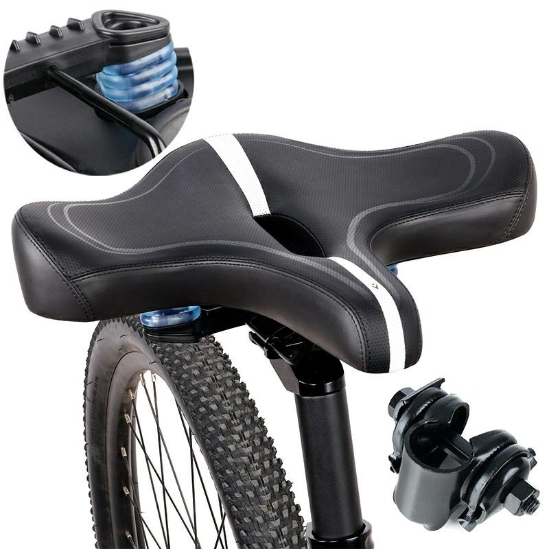 Cyklistické sedlo je vynikající volbou pro osoby hledající pohodlné a ergonomické řešení při jízdě na kole. Díky měkkému povrchu a výplni z polyetylenové pěny poskytuje nejen pohodlné sezení, ale také účinné tlumení nárazů během náročnějších tras. Jeho široké rozměry zaručují stabilitu a pohodlí, díky čemuž se každá jízda na kole stává ještě příjemnější. Specifikace: rozměry: šířka: 34cm, délka: 29cm, tloušťka: 5cm výplň: polyetylenová pěna tlumení průměr sedlovky: 22mm Množství na paletě: 240 ks