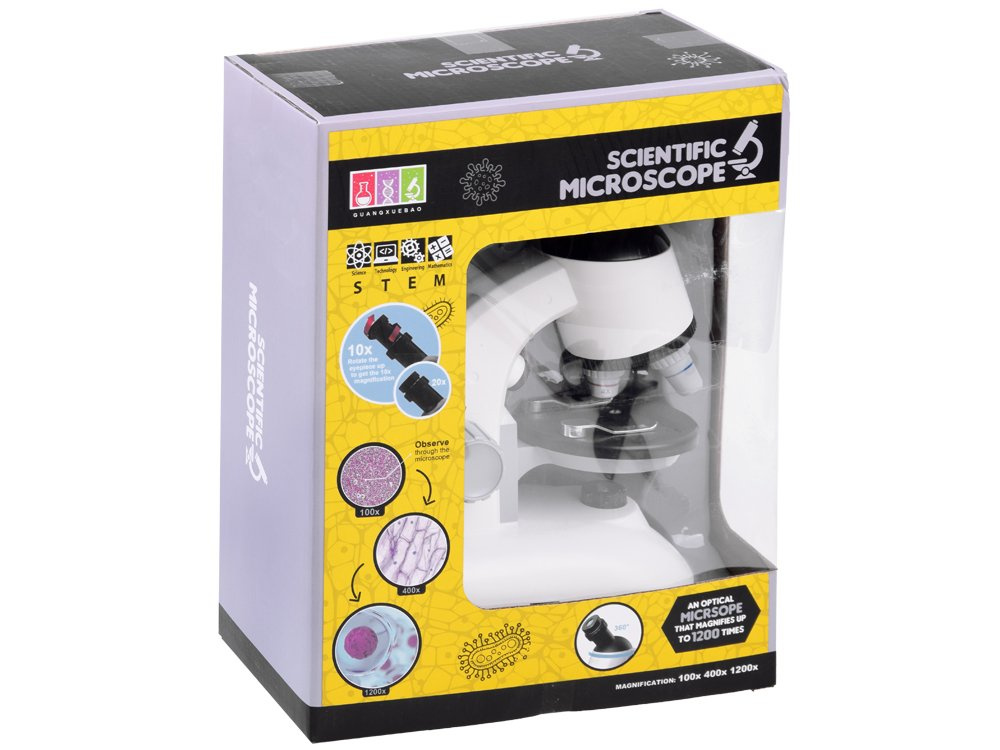 Malý laboratorní mikroskop je ideální jako dárek pro malé vědce, kteří rádi pozorují věci, které nelze vidět pouhým okem.Díky mikroskopu pozná naše dítě svět kolem nás z větší blízkosti než obvykle.Mikroskop seznámí malé badatele s úžasným světem mikrobiologie, vědy a přírody.Mikroskop má okulár otočný o 360°, tři typy zvětšení 4x/10x/40x a vestavěnou žárovku pro osvětlení pozorovaných vzorků.Sada je velmi pečlivě a precizně vyrobena výhradně z plastu a funguje na 2 baterie AA (nejsou součástí balení). Mikroskop má vše, co potřebujete k pozorování mikrosvěta.