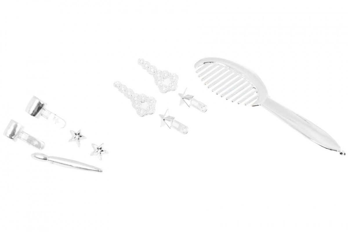 Stylingová panenka je dodávána s celou řadou doplňků, jako jsou šperky a vlasové doplňky.