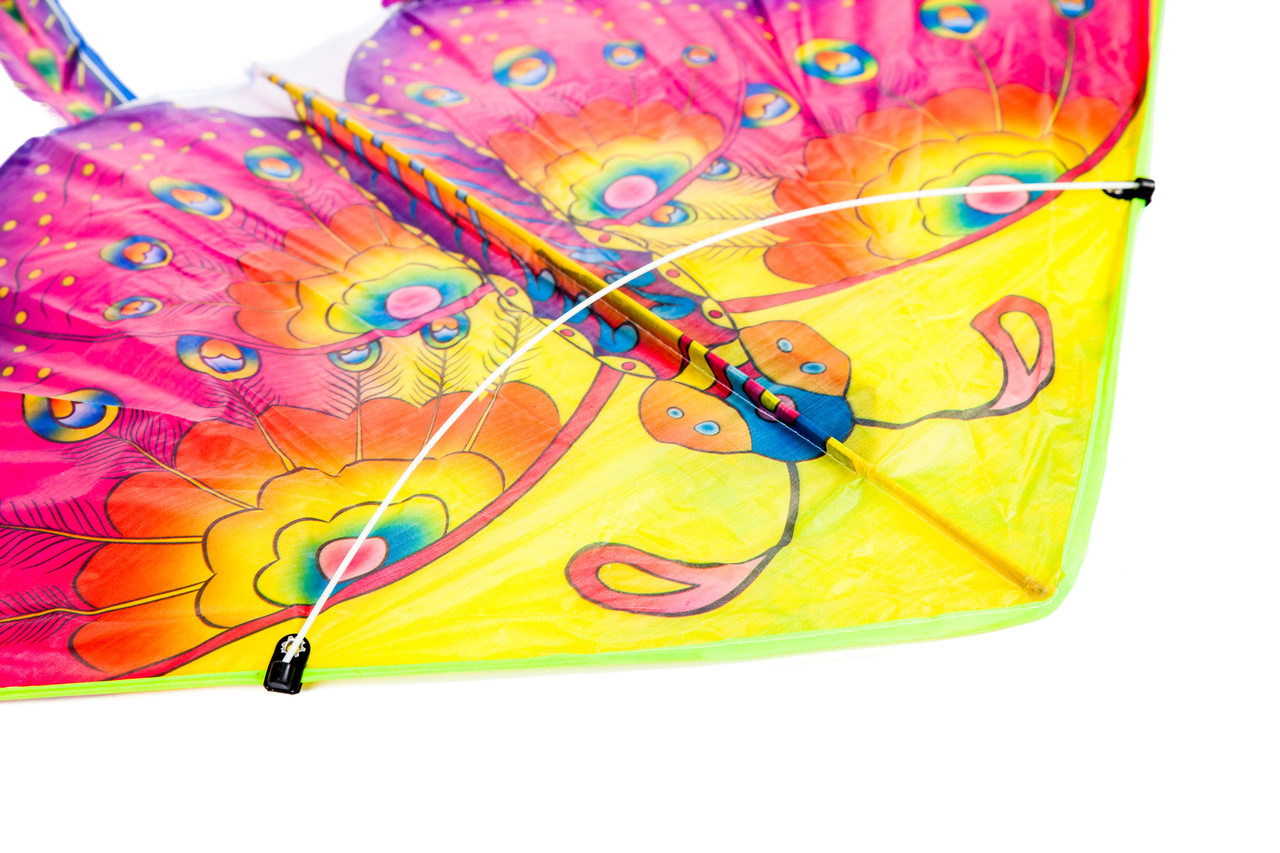Krásný barevný drak v originálním tvaru motýla, vyrobený z nylonového materiálu.