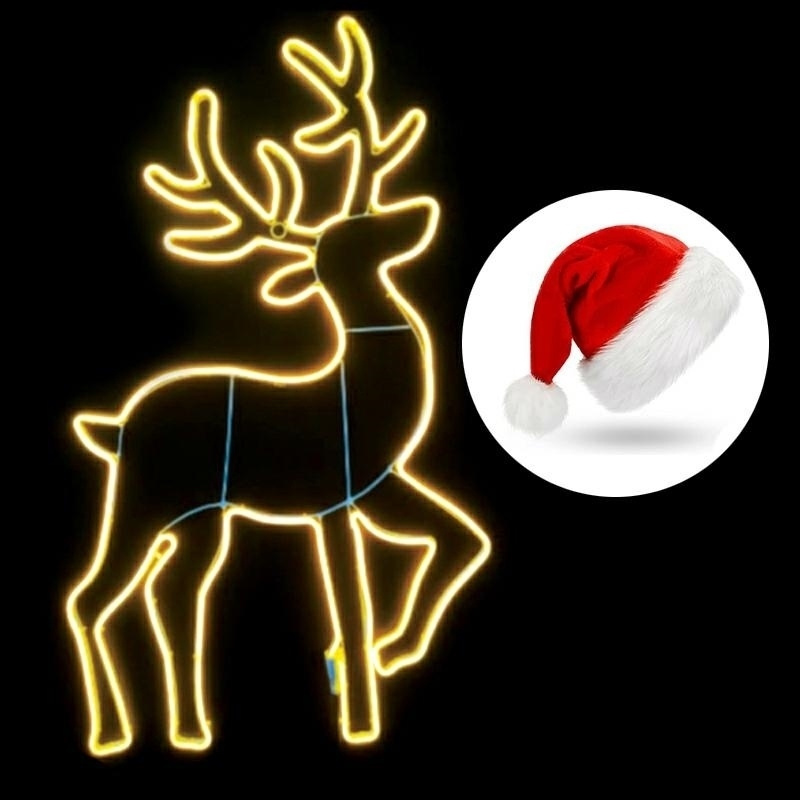 Neonové LED světlo ve tvaru soba je skvělou ozdobou domu, balkonu, terasy - zajistí příjemnou sváteční atmosféru při velmi nízké spotřebě elektrické energie. Polovodičový zdroj světla je velmi odolný a nevydává teplo. LED had vyrobený technologií neon flex. Specifikace: napájení: 220-240V pevný kovový rám barva světla: teplá bílá Programátor - 8 režimů svícení třída ochrany: IP44 rozměry: 55x92cm počet diod: 672 délka. kabel LED: 6m délka. napájecí kabel 150 cm Rozměry kartonu: 95x57x5 cm ZDARMA čepice Mikuláše množství na paletě 50 ks