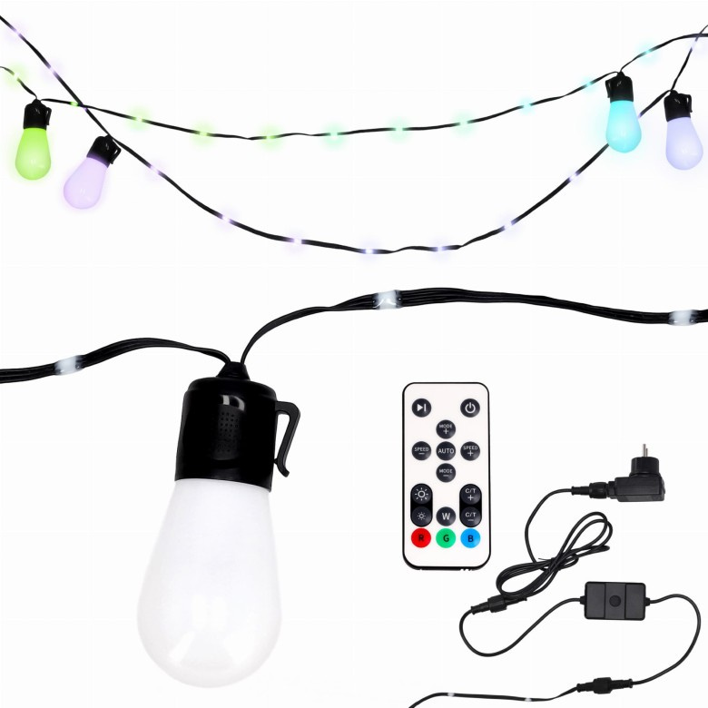 Dedikovaná aplikace: Aplikace dostupná na iOS a Android umožňuje plnou kontrolu nad osvětlením. Díky ní můžeš regulovat jas a měnit barvu a odstín světla každé žárovky zvlášť, přizpůsobujíc girlandu svým potřebám a preferencím. Navíc aplikace umožňuje personalizaci girlandy – můžete vytvořit vlastní světelné schémata, přizpůsobená pro každou příležitost. Podpora Alexa a Google Assistant: Díky kompatibilitě s Alexa a Google Assistant máte možnost ovládat girlandu pomocí hlasu, což poskytuje další pohodlí. Dálkové ovládání: V sadě se nachází dálkový ovladač, který umožňuje pohodlné ovládání osvětlení na dálku, bez potřeby použití aplikace. Vysoká kvalita provedení: V sadě se nachází 15 LED žárovek (každá s háčkem pro snadné zavěšení) a výkon osvětlení je 10 W. Počet LED diod: 180 ks. poskytuje intenzivní, ale úsporné osvětlení. Odolnost vůči povětrnostním podmínkám: Třída ochrany IP44 (P65 pro girlandu) zajišťuje, že girlanda je odolná vůči dešti a vlhkosti, což umožňuje její použití venku, ale také se skvěle hodí do interiérů.