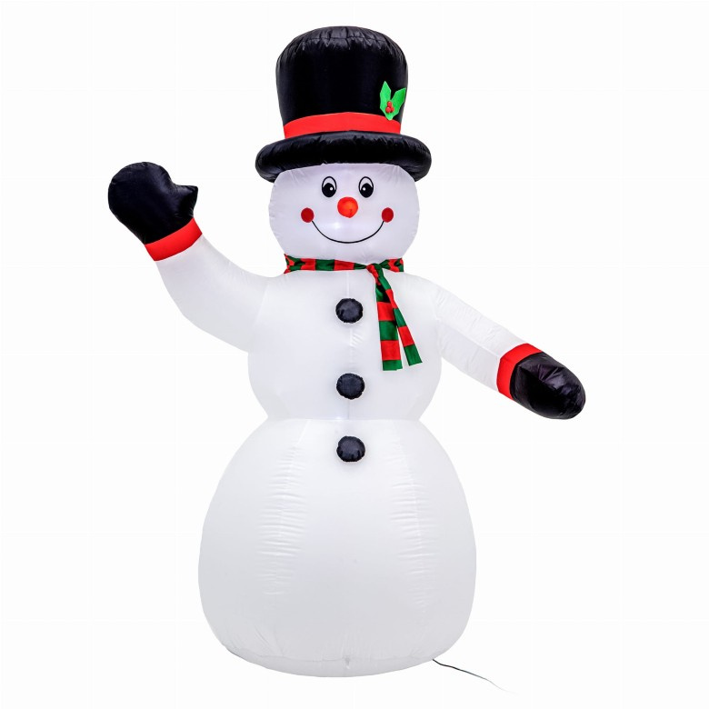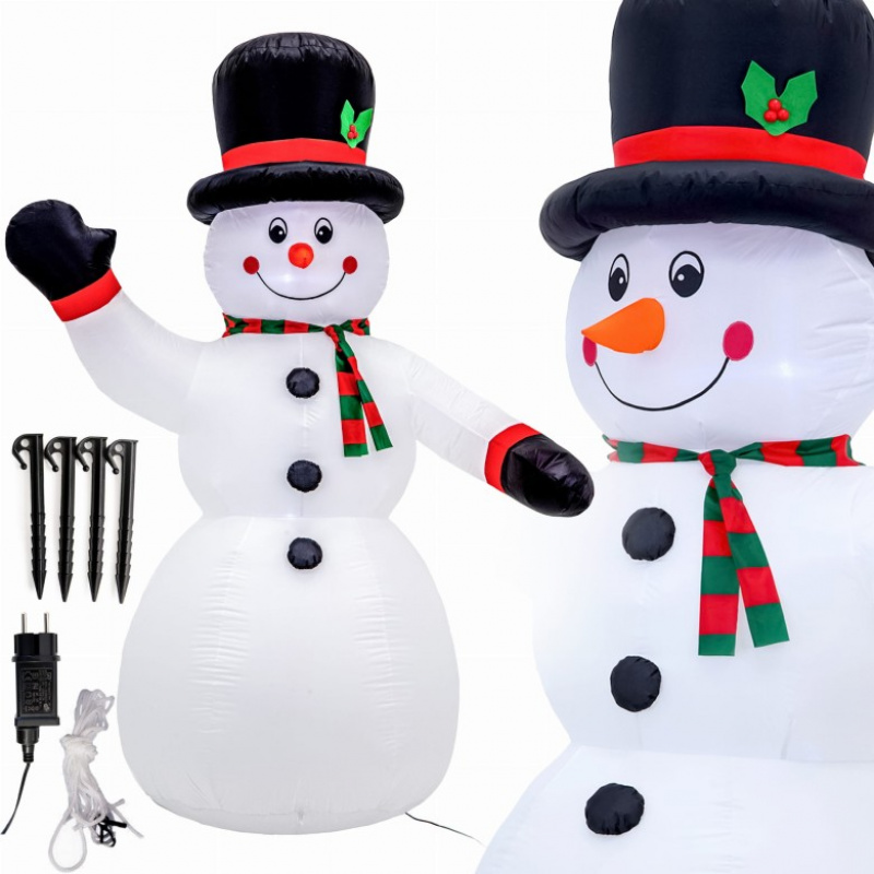 Sněhulák má vestavěný kompresor, který ho naplňuje vzduchem. Navíc má dekorace zabudovaná LED světla. Po setmění sněhulák dodává atmosféru svým podsvícením. Sněhulák byl vybaven dvěma plátěnými poutky umístěnými ve výšce pasu, které slouží k ustálení figury pomocí 4 kolíků rozepnutých na 2 lankách. Dodatečným zatížením svítícího sněhuláka jsou 2 sáčky, které lze naplnit závažím a umístit uvnitř figurky. Dekorace je vybavena napájecím zdrojem, který má třídu krytí IP44.
