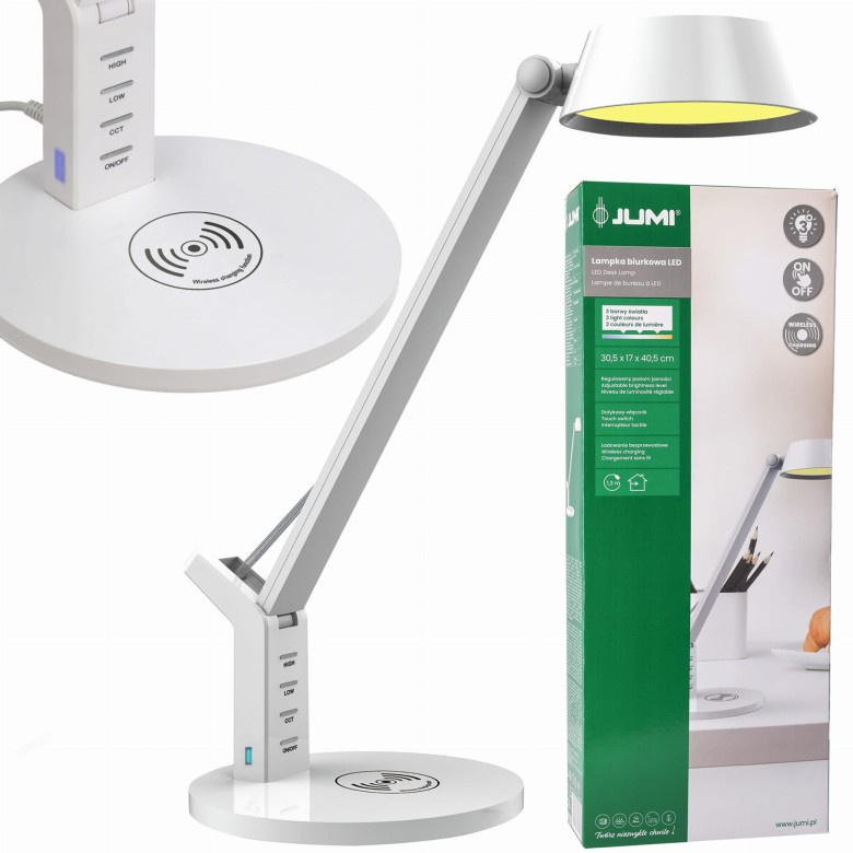 Tři barvy světla poskytují kontrolu nad intenzitou osvětlení, což je obzvláště užitečné během dlouhých hodin studia nebo práce. Vypínače jsou dotykové, což usnadňuje používání. Lampička má navíc možnost bezdrátového nabíjení, což umožňuje mimořádně rychlé a pohodlné nabíjení vybraného zařízení. Jeho elegantní a minimalistický vzhled bude skvěle ladit s každým interiérem.