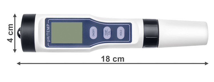 SPECIFIKACE - vodotěsné pouzdro; současné měření pH a teploty; stupnice: pH: 0,00-14 pH; přesnost: ± 0,01 pH; rozlišení měření: 0,01 pH; Teplota: 0,19 C-60,0 °C nebo 32,0-140,0 F; přesnost: ± 0,5 °C; rozlišení měření: 0,1 °C; kompenzace teploty kapaliny (ATC); napájení: baterie: 3x1,5V; kalibrace: 3-bodová - automatická; automatické vypnutí po 5 minutách; rozměry: 18/4/4 cm; hmotnost: 0,091 kg; hmotnost s obalem: 0,296 kg.