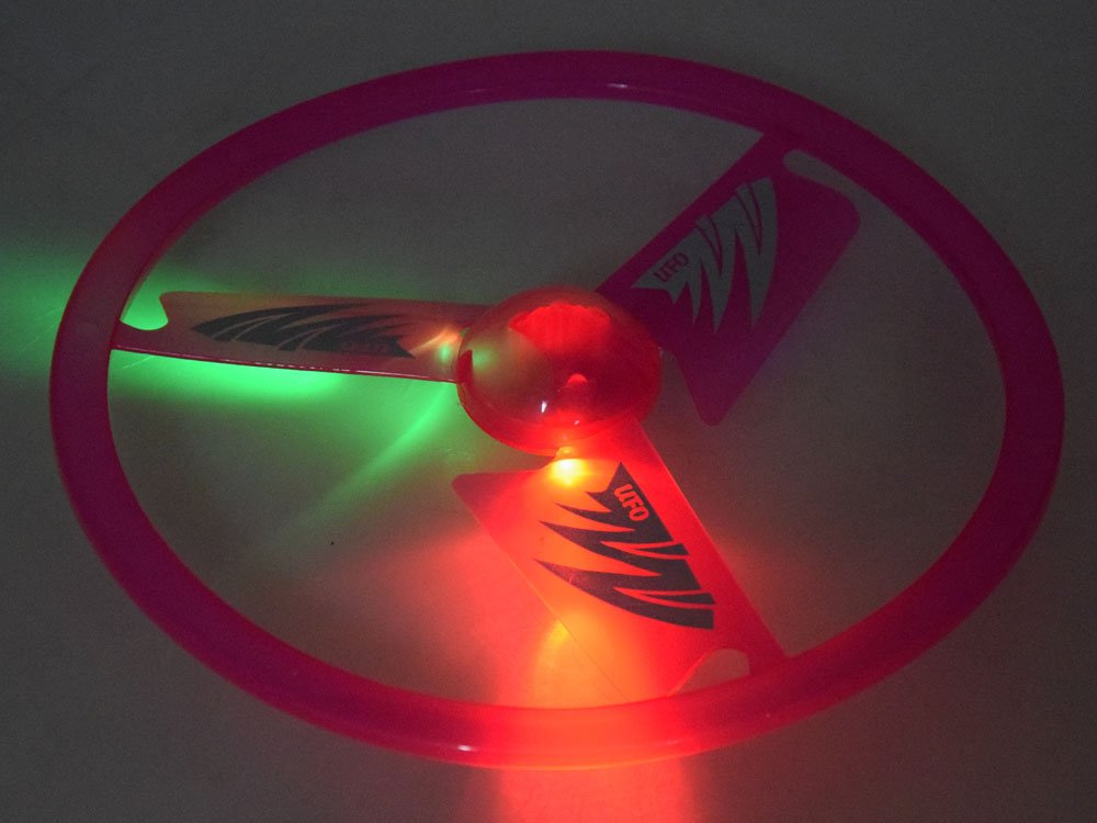 Úžasný létající disk, frisbee, létající ufo pro hru v parku, na zahradě pod širým nebem. Tahací hračka a světelné efekty zajistí spoustu pohybu a zábavy. Vynikající disk pro hraní v parku a na pláži. Létající talíř je nejlepší způsob pohybu venku. Hračka poskytuje senzační světelné efekty při večerním hraní díky přiloženým bateriím, které osvětlují LED diody umístěné v desce.