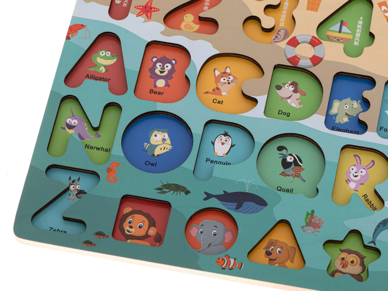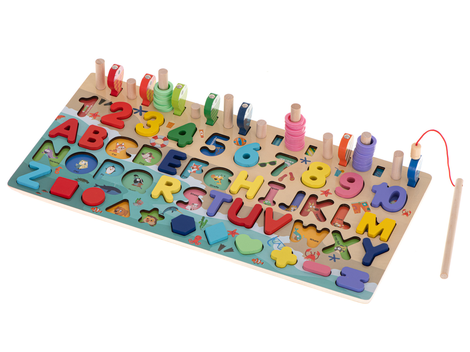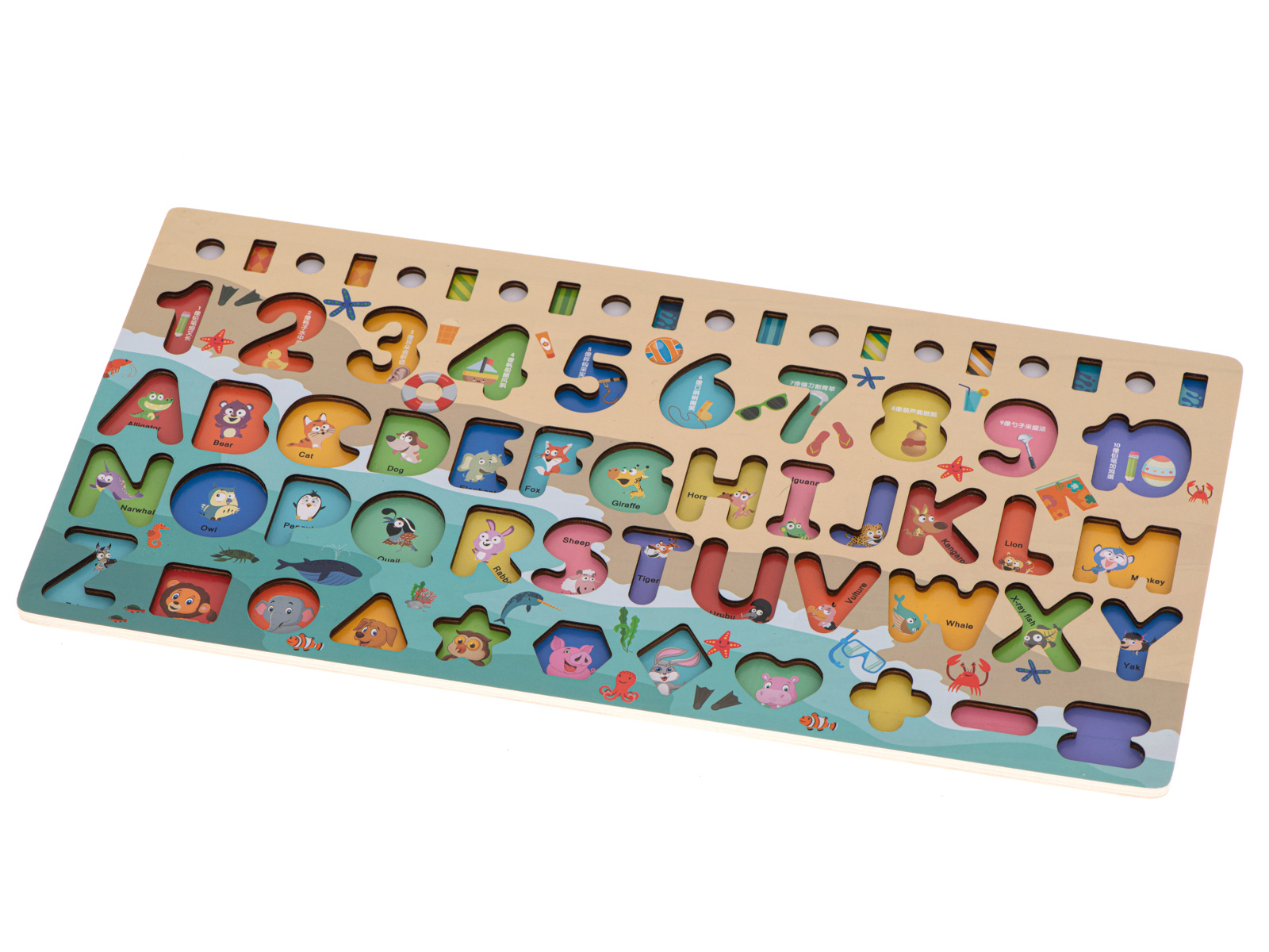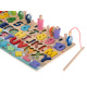 Součástí sady jsou barevné geometrické obrazce a čísla, která je třeba vložit do příslušných otvorů. Hra naučí vaše dítě rozpoznávat tvary a navíc mu pomůže naučit se čísla a písmena.