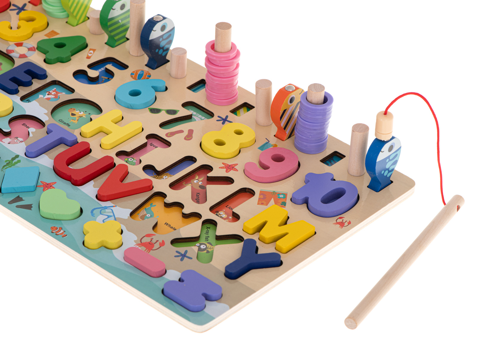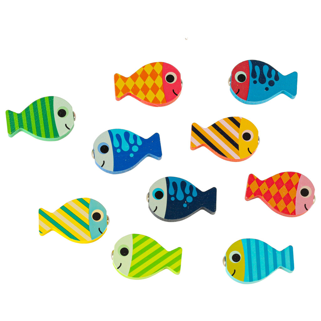 Mezi mnoha třídiči najdete barevné rybičky s magnety, které je třeba chytit pomocí rybářského prutu, rovněž vybaveného magnetem.
