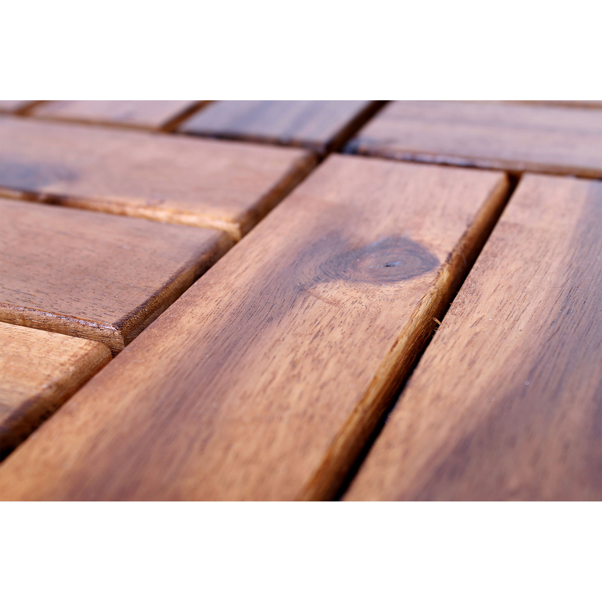 Podlahové dlaždice jsou vyrobené z kvalitního akáciového dřeva, což je tropické tvrdé dřevo, které je odolné proti vlivům počasí a má dlouhou životnost.