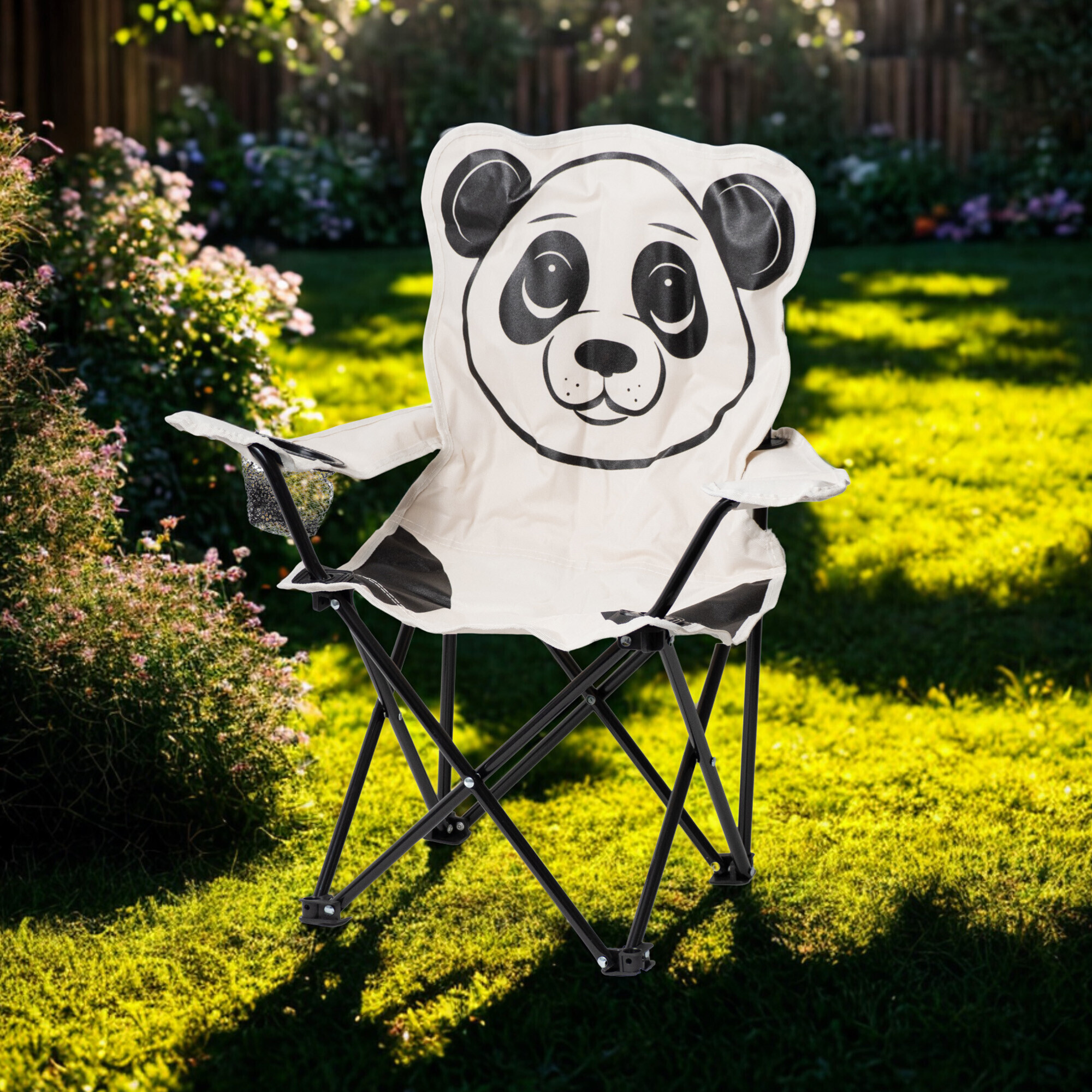 Skládací křesílko s dětským motivem si vaše děti zamilují. Je vyrobené z kovové rozkládací konstrukce s polyesterovým potahem ve tvaru zvířátka.