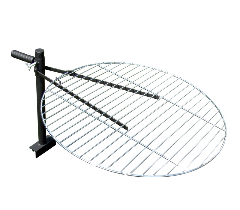 Otočný grilovací rošt na ohniště s polohovacím držákem o průměru 60 cm. Praktický rošt pro grilování masa a zeleniny, který je možno snadno vytáčet mimo prostor ohniště.