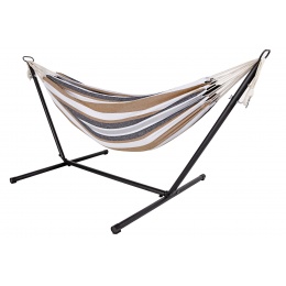 Sestava z odolného ocelového rámu lakovaného práškovou metodou, který díky své nosné konstrukci nabízí obzvláště bezpečné stání. Díky pohodlné polyesterové tkanině je houpací síť velmi pohodlná. Ležící plocha díky rozměrům 150x200 cm nabízí dostatek místa pro každého, dokonce i pro dva. Do maximální nosnosti 150 kg.