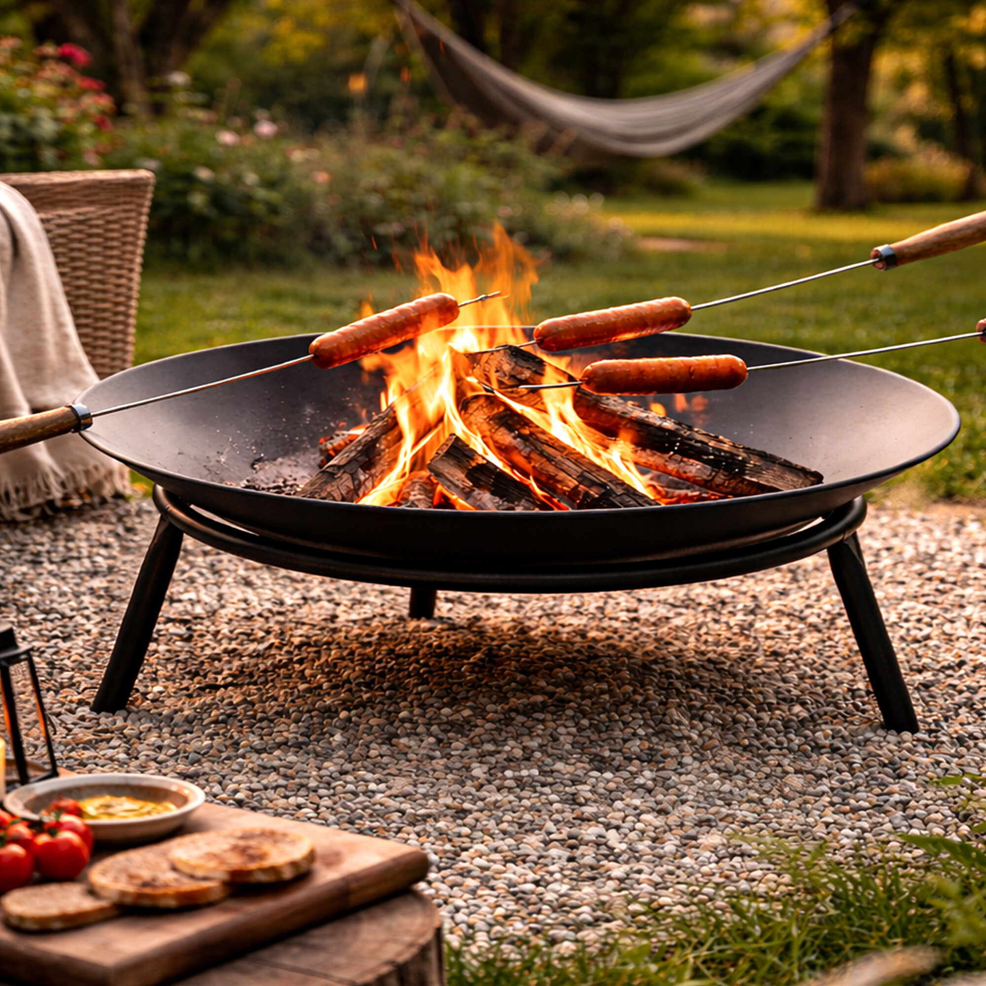 Oheň neodmyslitelně patří ke chvilkám pohody a posezení s přáteli. Ohniště lze využít nejen jako zdroj světla a tepla, ale také na tradiční opékání špekáčků nebo v kombinaci s trojnožkou na přípravu jídla v kotlíku.