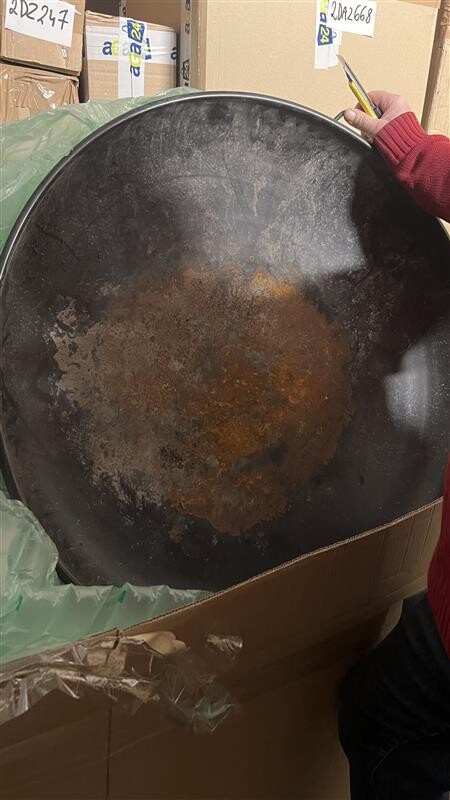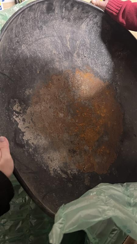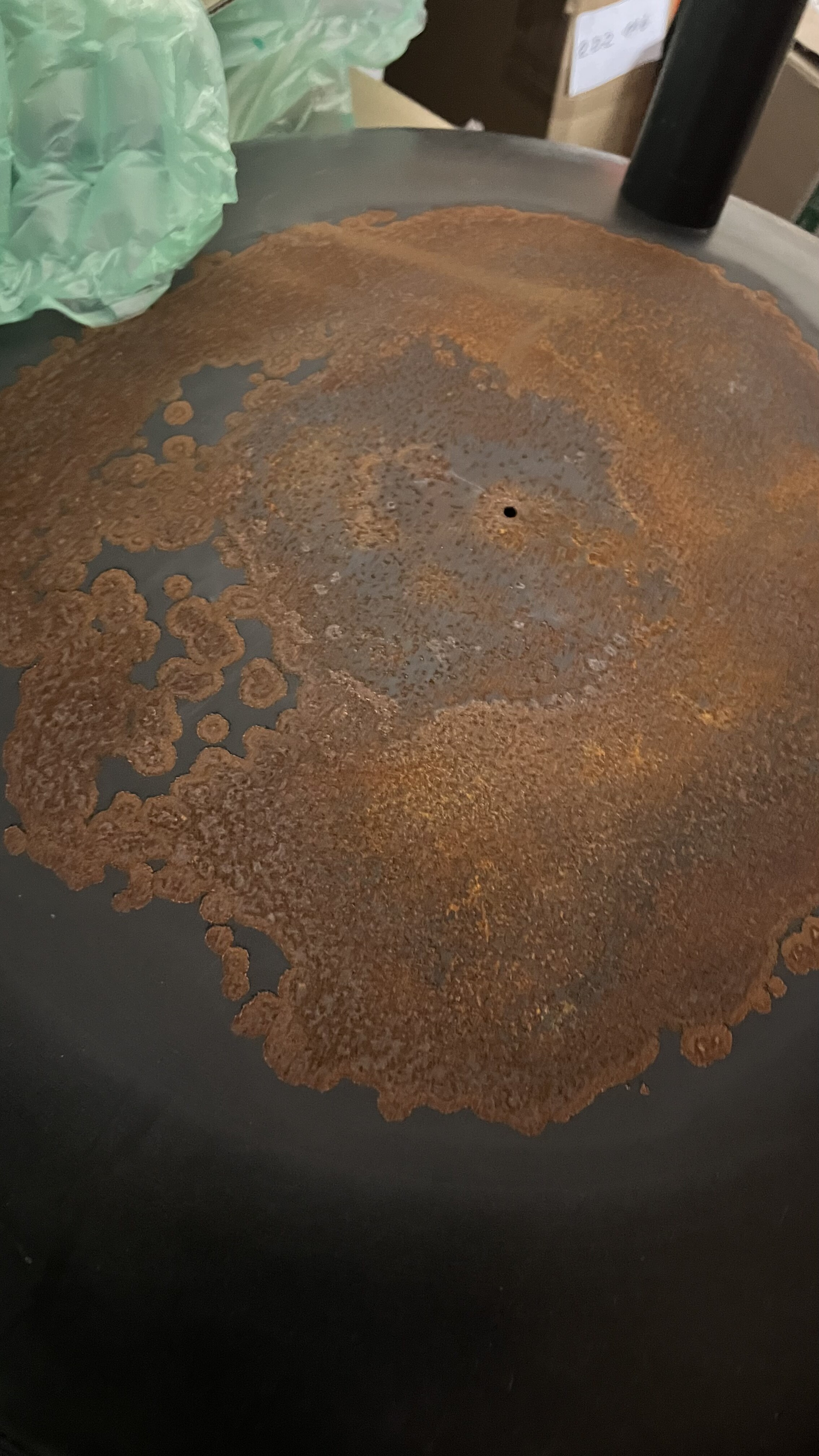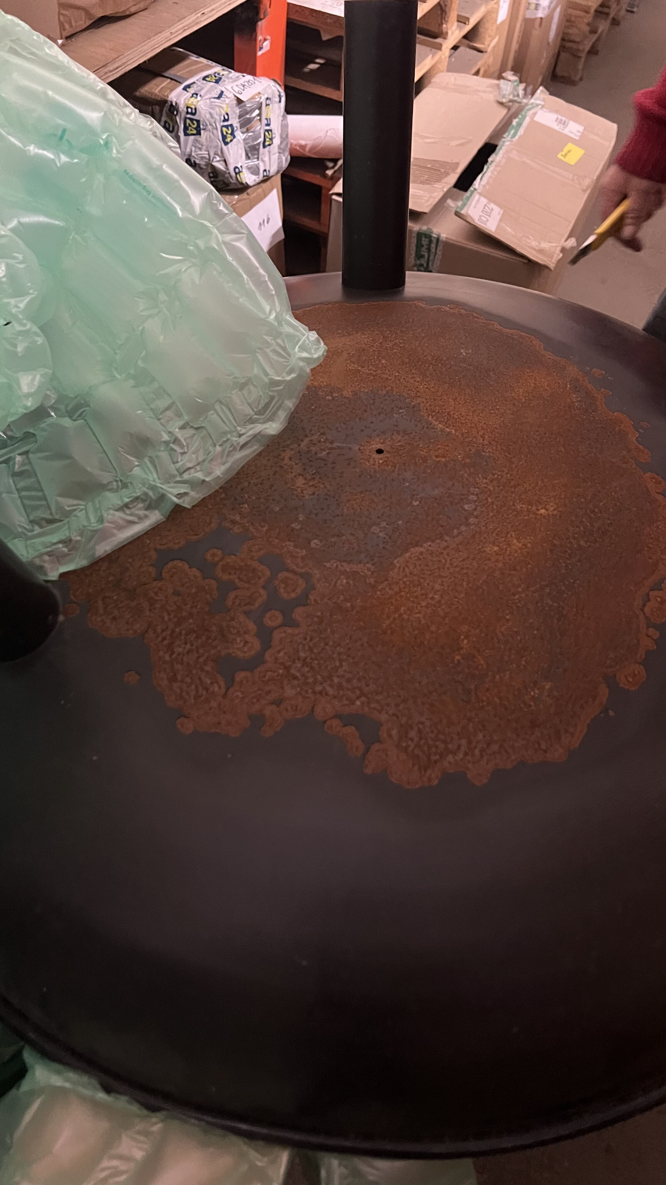 Přenosné ohniště je zkorodované, ale plně funkční.