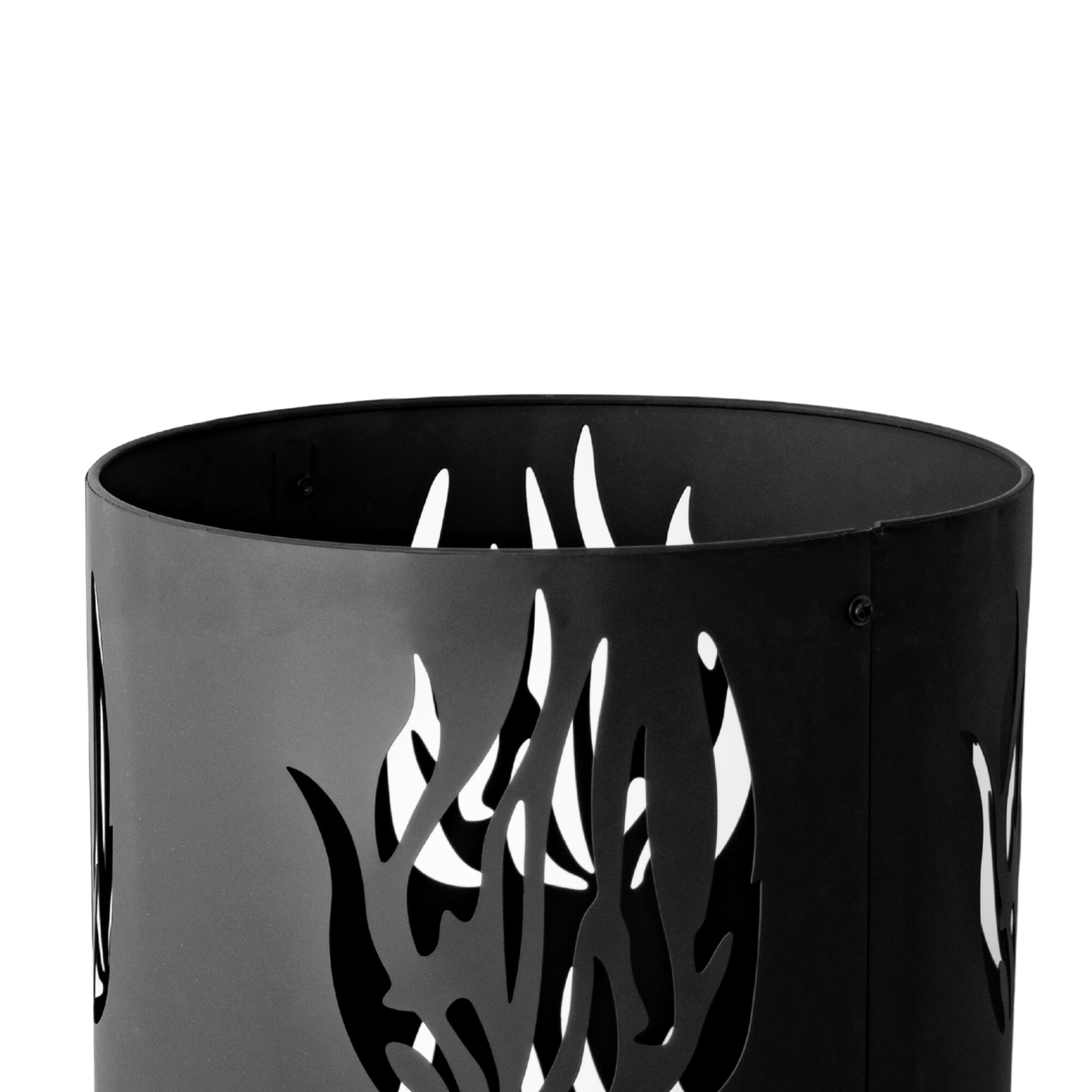 Toto kovové ohniště nabízí nejen efektivní hoření díky ventilaci, ale také vytváří atmosférické osvětlení zásluhou dekorativních otvorů ve tvaru plamene.