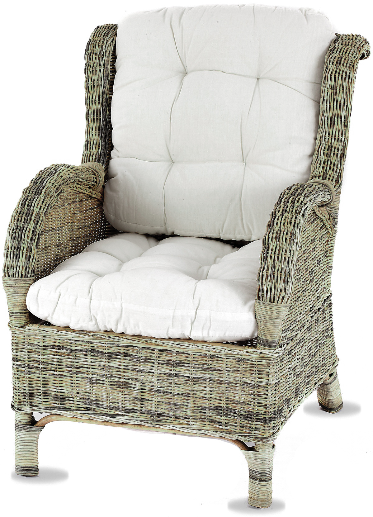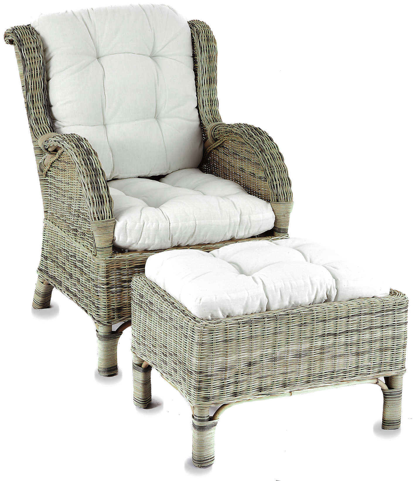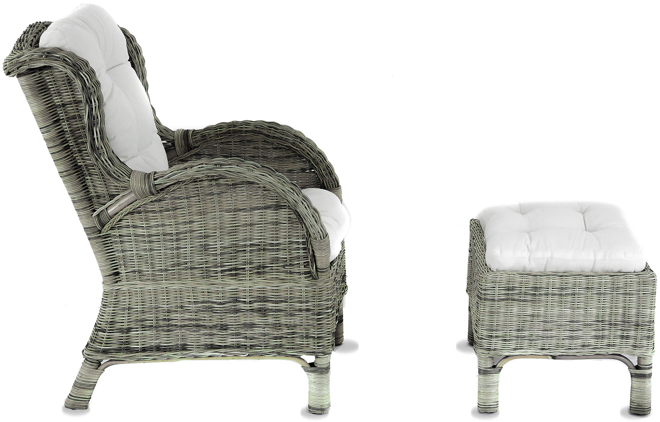 - Sestava obsahuje ratanové křeslo, ratanový taburet a kompletní sadu polstrů