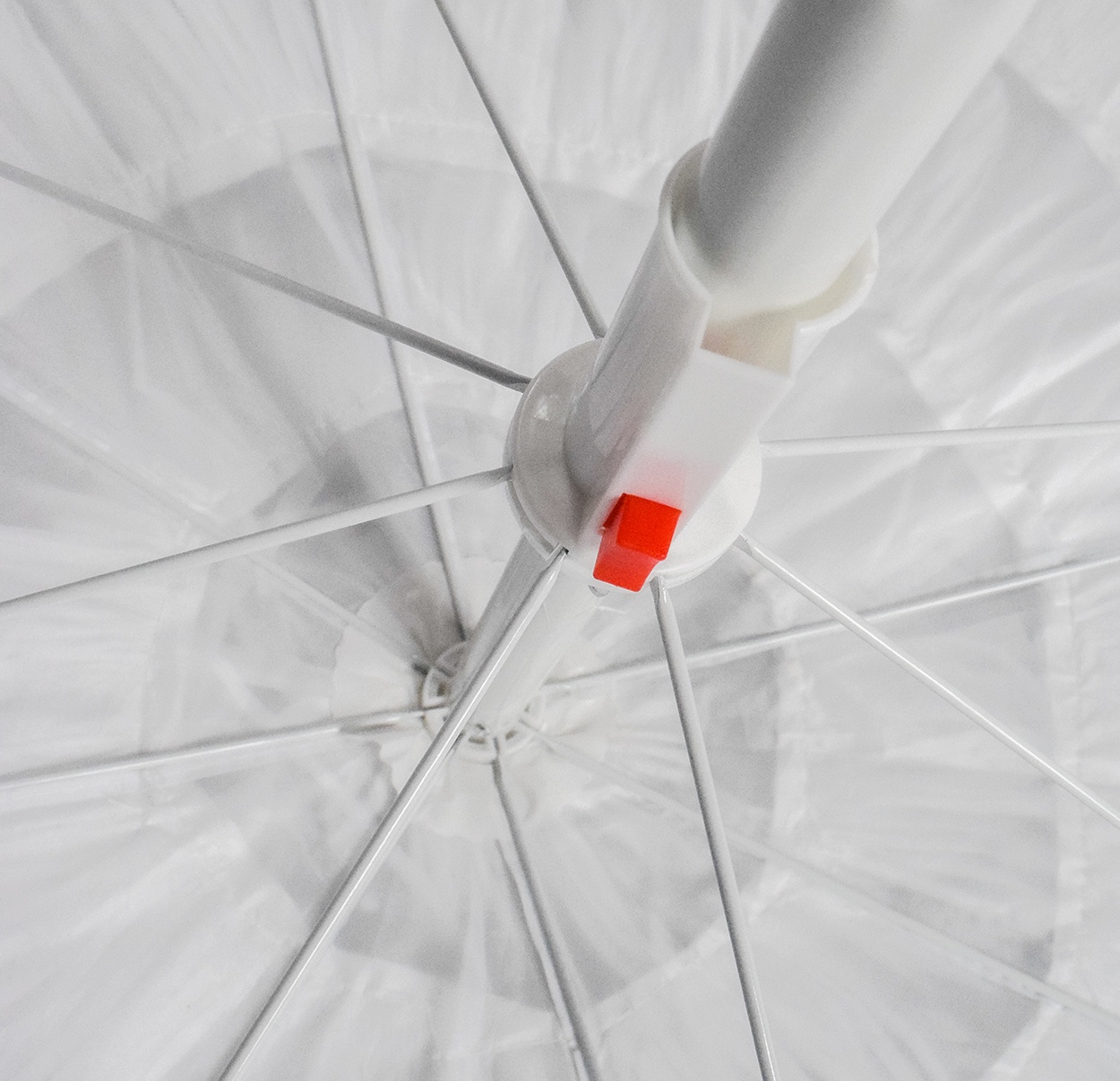 Snadnou manipulaci při rozkládání a skládání slunečníku zajišťuje jednoduchý mechanismus. Stříšku samotnou pak můžete naklápět.