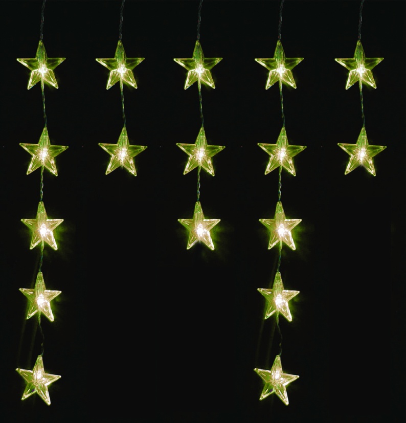 LED řetěz je tvořen hvězdami, které svítí teplou bílou barvou.