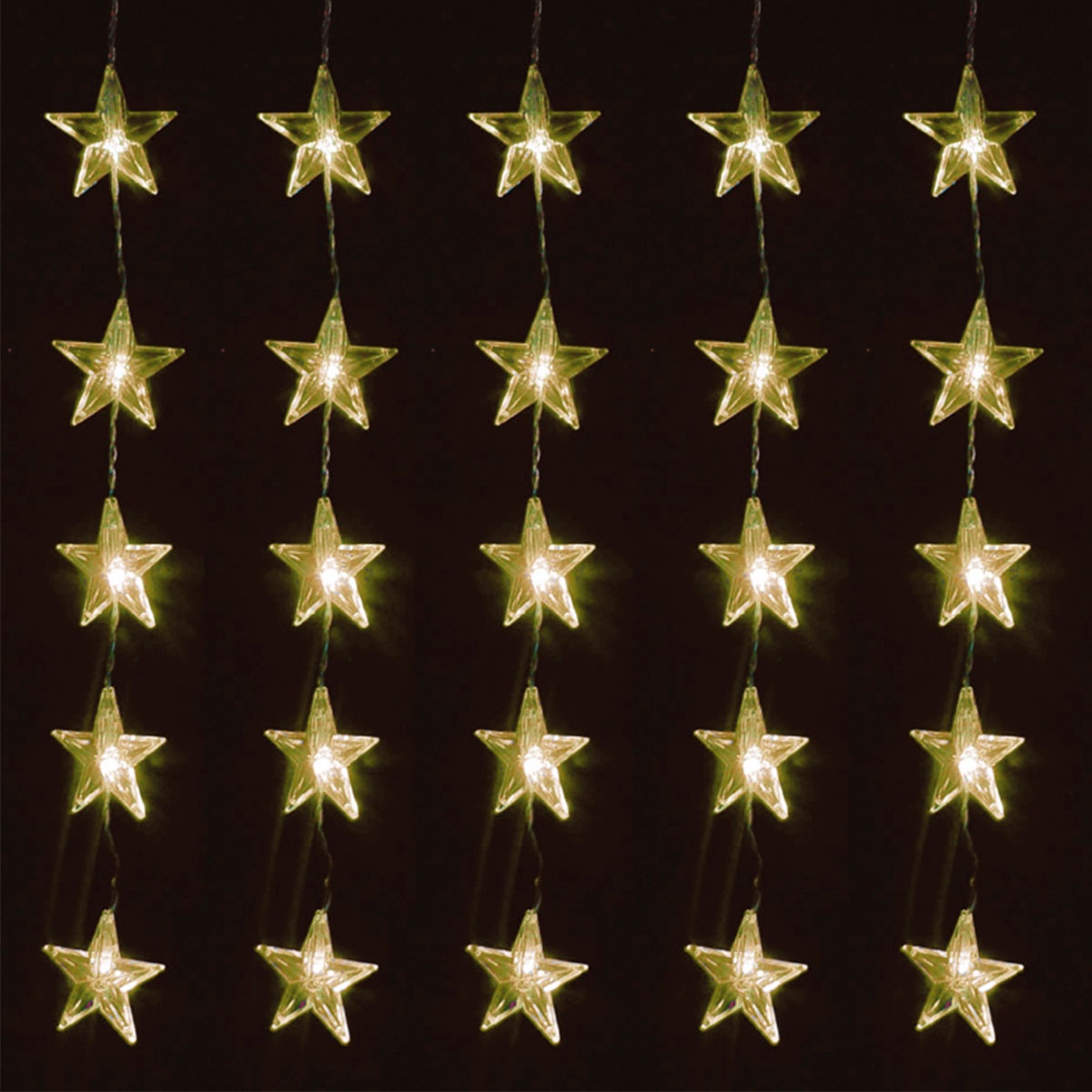 LED řetěz je tvořen hvězdami, které svítí teplou bílou barvou.