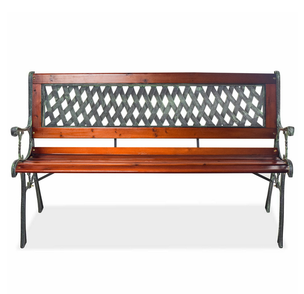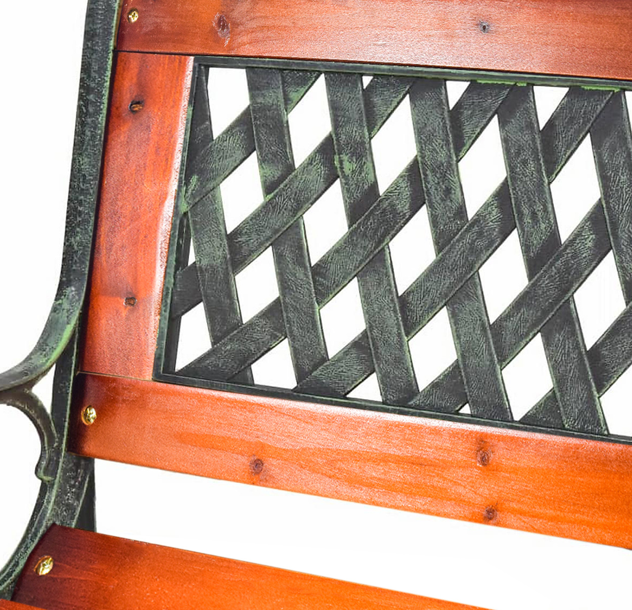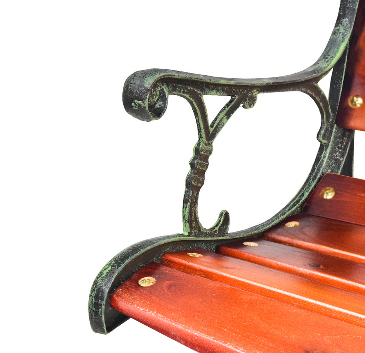 Pevná litinová konstrukce, která je doplněna o dřevěné latě.  Nosnost lavice 150 kg.