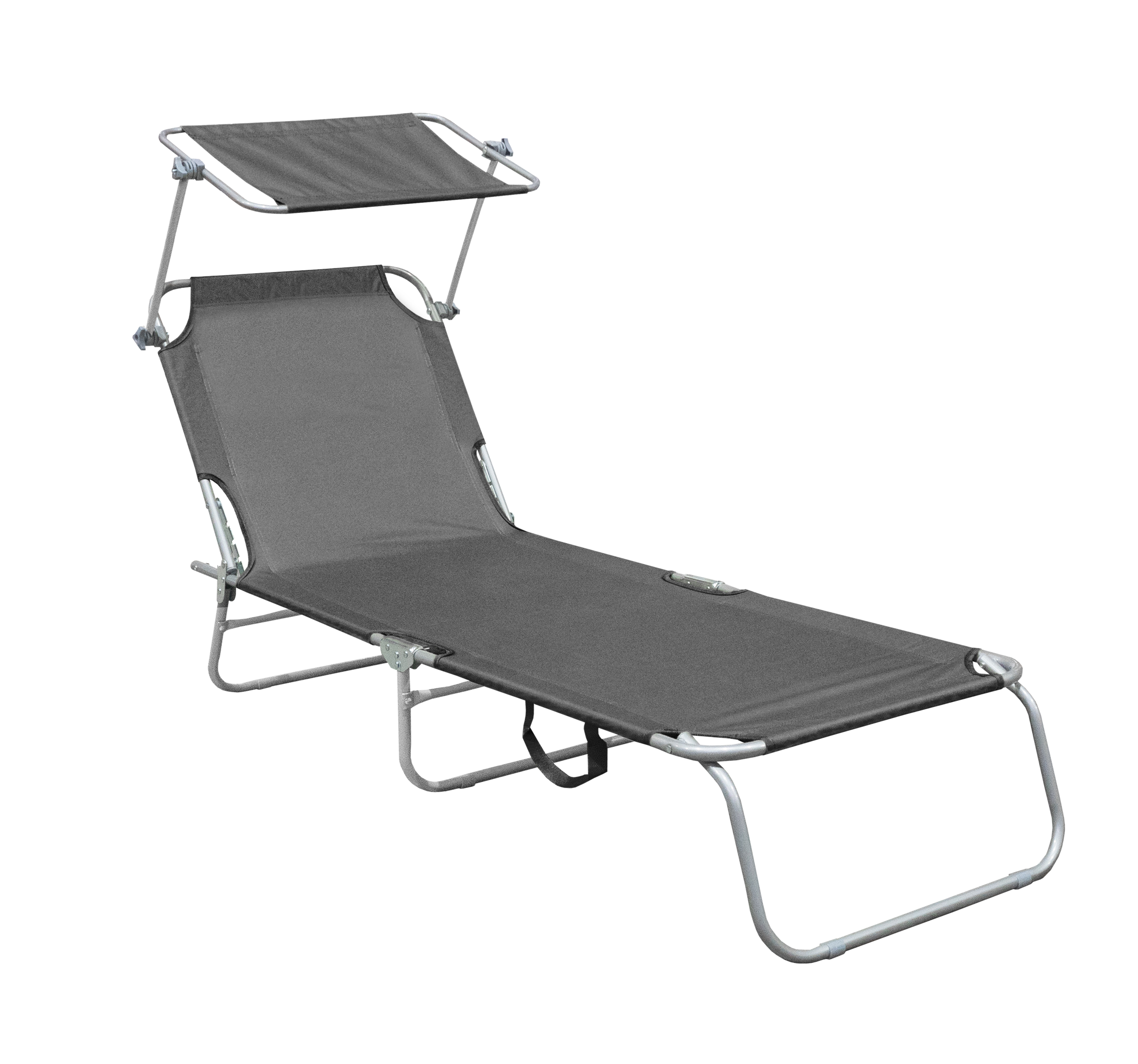 Skládací zahradní lehátko se zpevněnou ocelovou konstrukcí, v moderním designu, vhodné pro zahrady, na kempování či pláže.