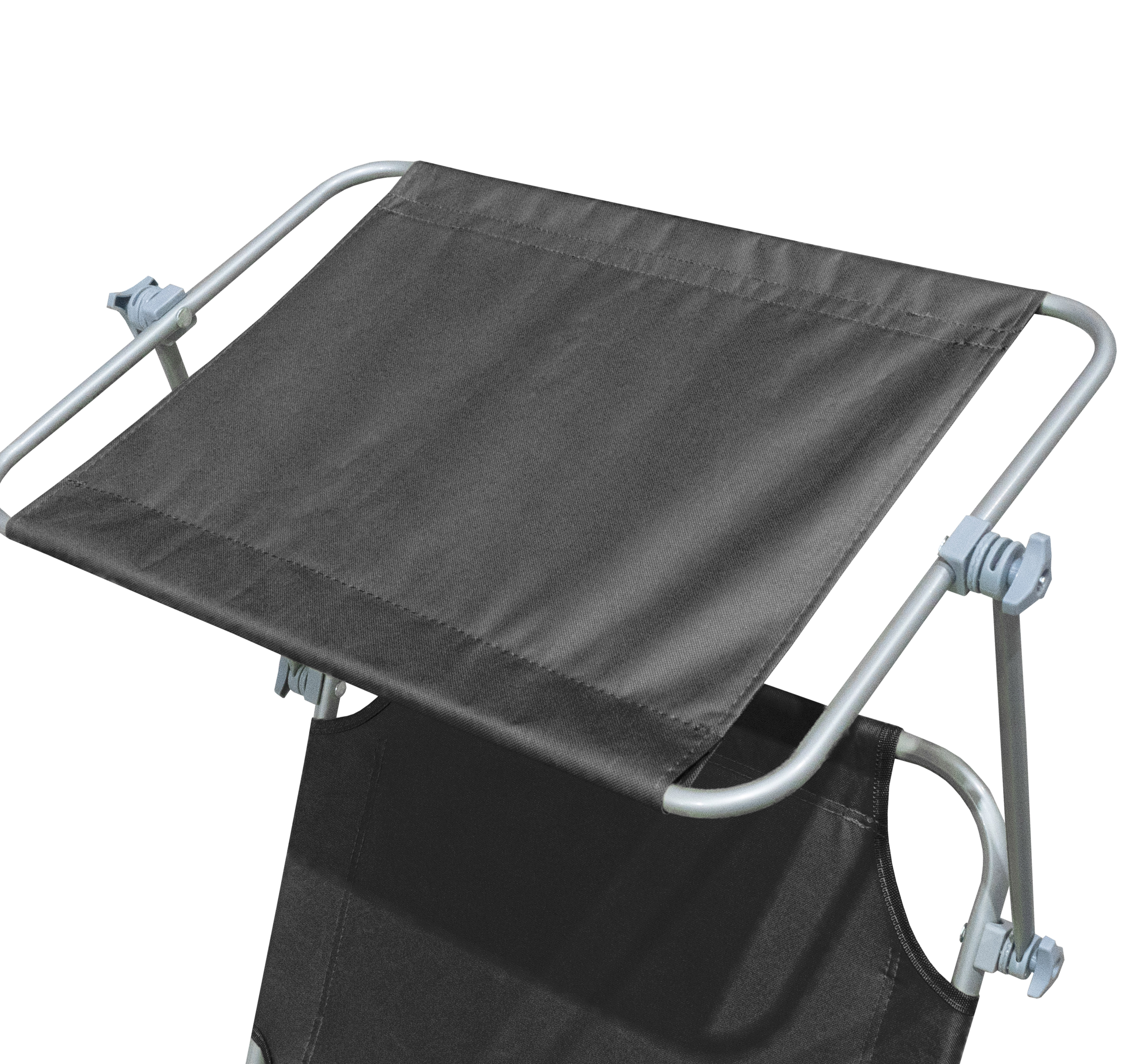 Na lehátku lze odpočívat i při ostrém sluníčku, neboť zabudovaná stříška Váš obličej dokonale ochrání před prudkým sluncem.