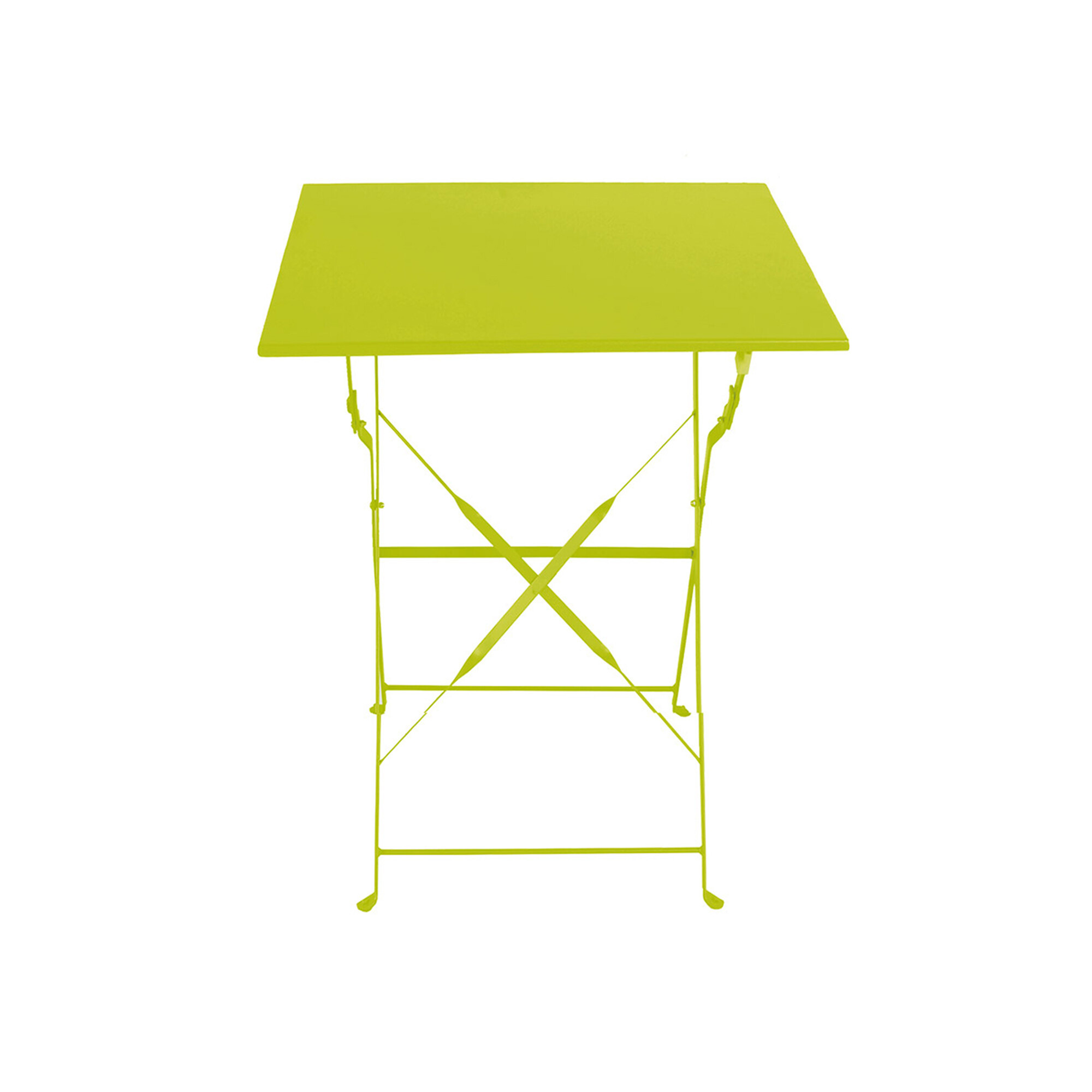 Sestava zahrnuje 2 křesla a stůl v zelené barvě. Zahradní stolek má kovový rám a skládací mechanismus kostry, díky tomu můžete stolek velmi rychle rozložit nebo složit.