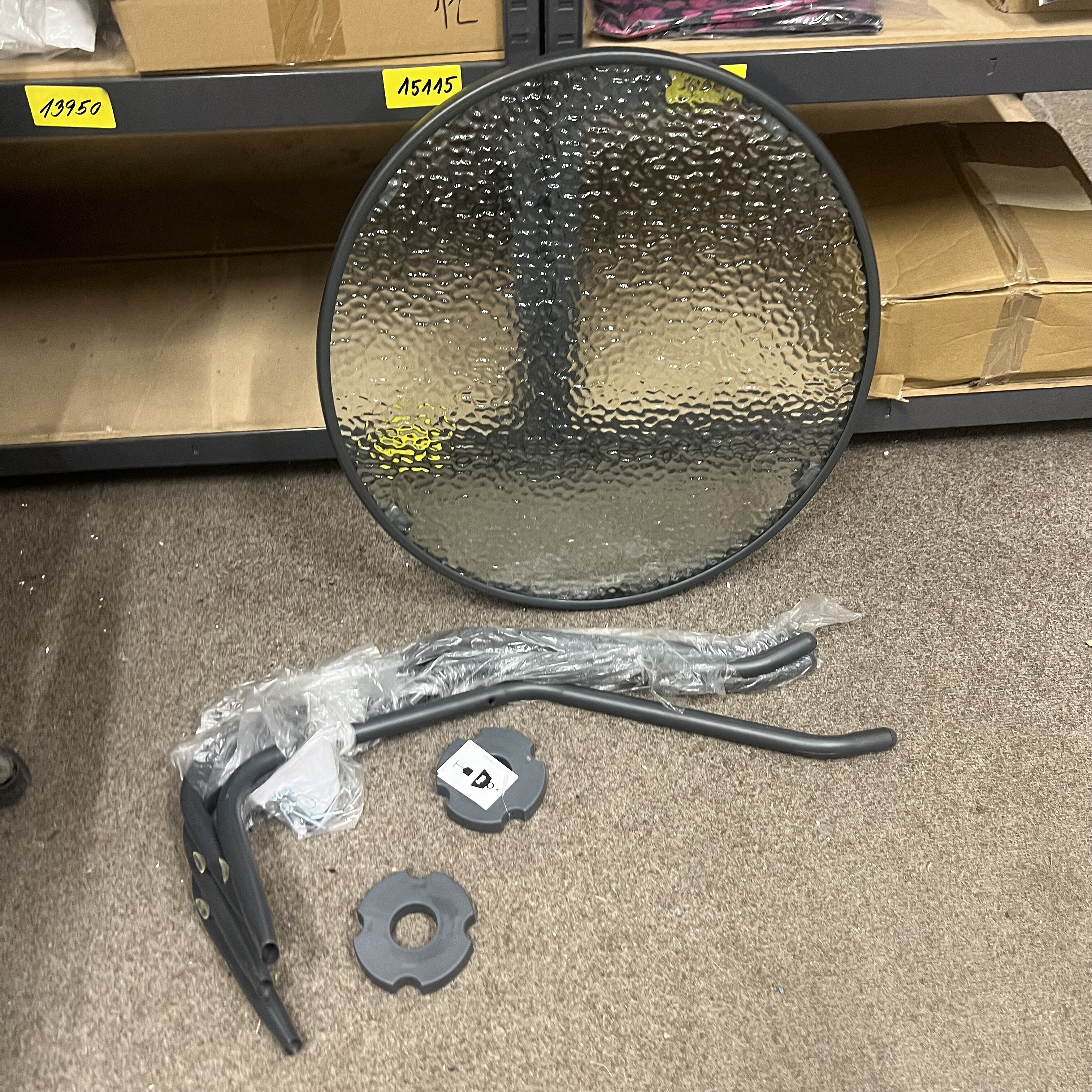Stůl je plně funkční a stabilní, avšak rám a nohy nesou viditelné škrábance a obal je poškozený.