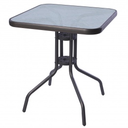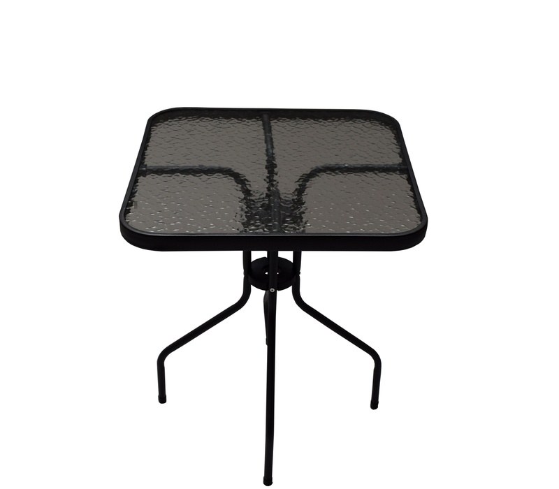 Zahradní stůl BISTRO s pevným kovovým rámem a vroubkovanou skleněnou deskou v moderním designu, vhodný pro zahrady, terasy, kavárny, altánky, balkóny či pláže. Celý popis