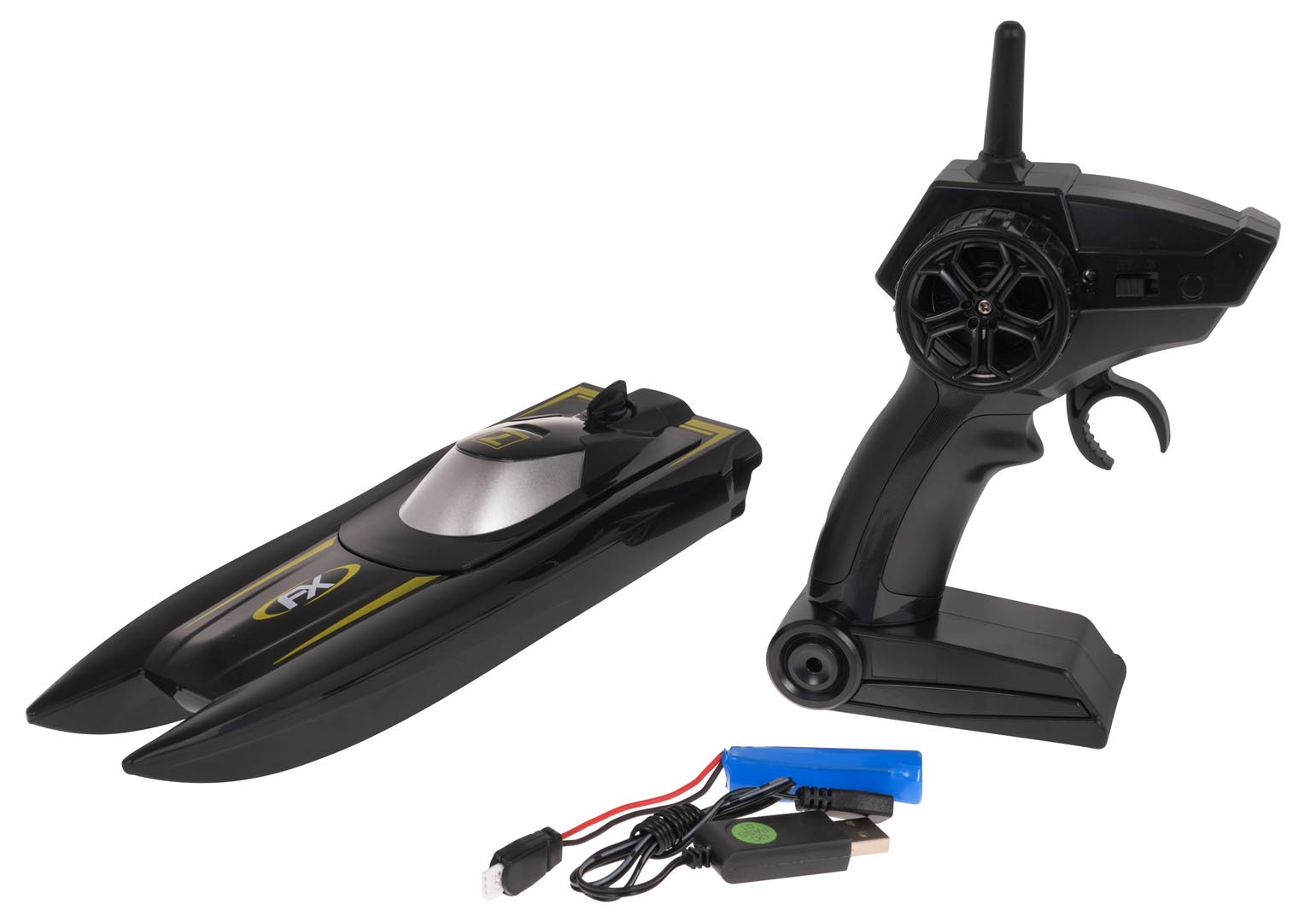 | Dálkově ovládaný rychlostní člun pro děti od 14 let a dospělé. Byla vyrobena z plastu, což zajišťuje její stabilní konstrukci. Lodí se velmi snadno ovládá dopředu, dozadu a zatáčí doprava a doleva. Co více, motorový člun má speciální senzor, díky kterému se spustí pouze ve vodě, a po vyjmutí z vody se vypne. Loď je napájena akumulátorem typu 650 mAh 3,7 V (součástí balení), ovladač bateriemi typu 2 x AA 1,5 V (nejsou součástí balení).