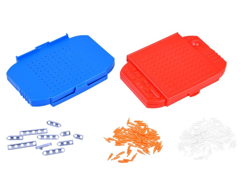 - sada kolíků ve dvou barvách (bílé a oranžové).