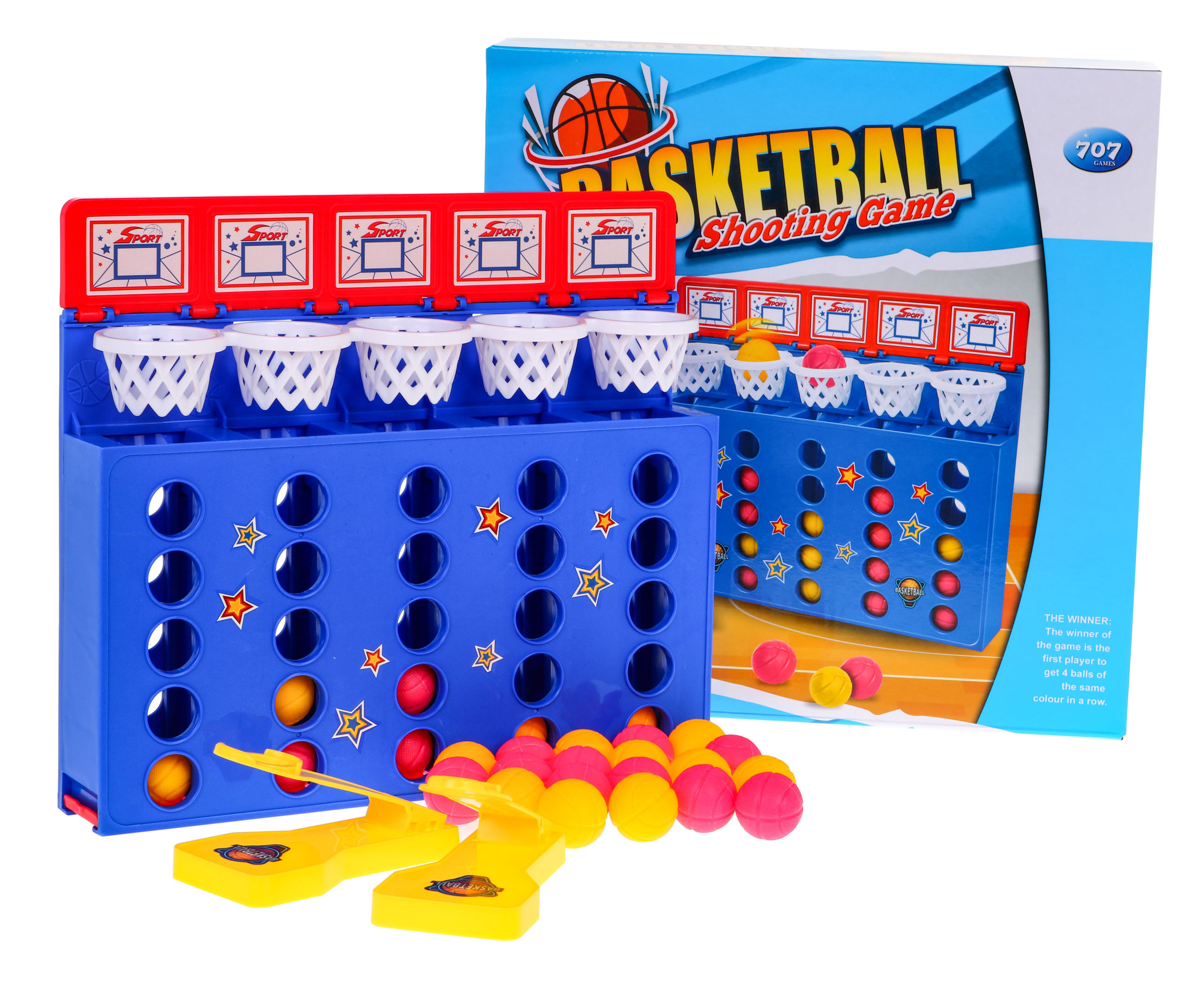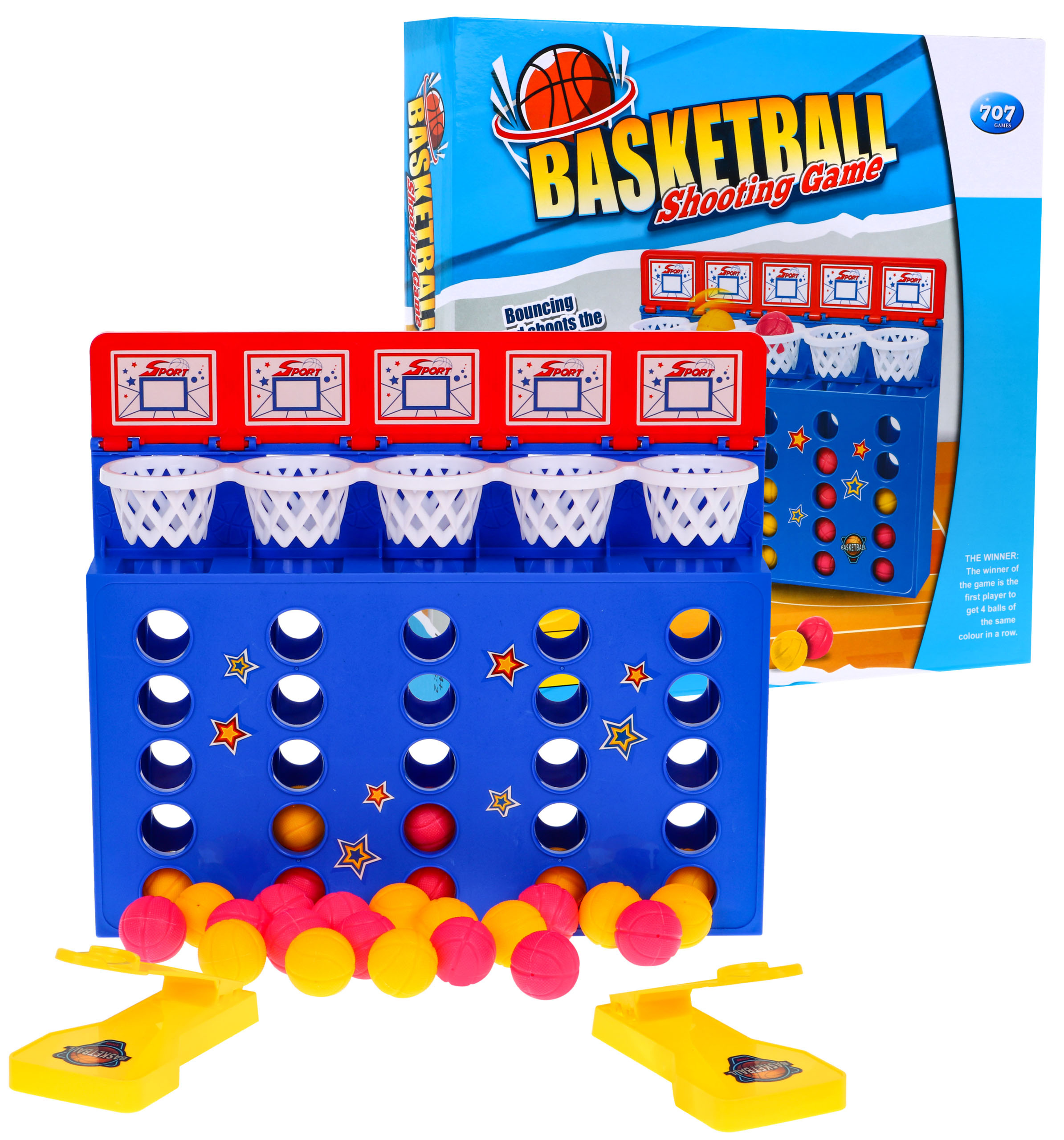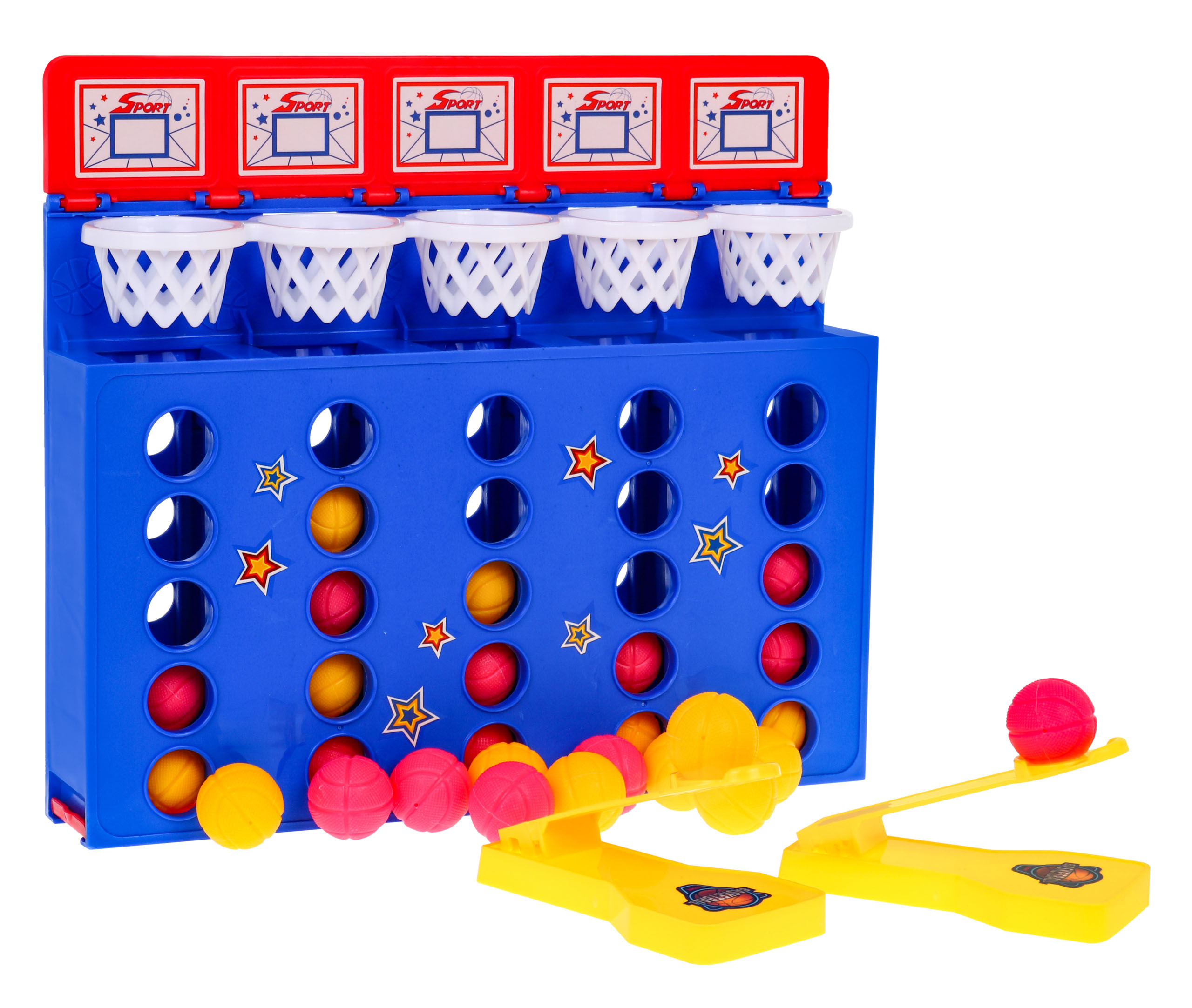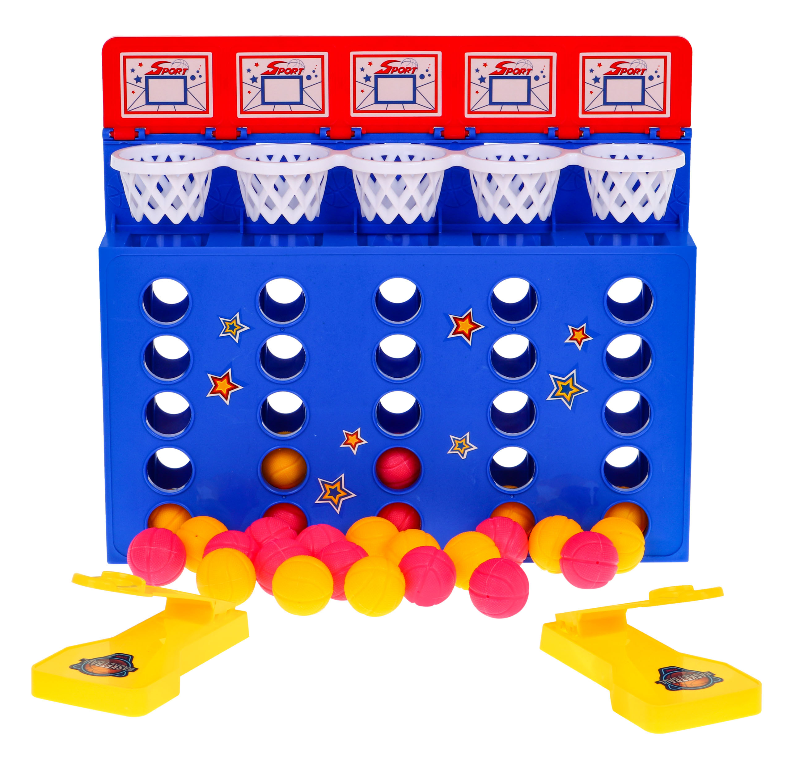 Obratnostní hra Čtyři v řadě je určena pro děti od 4 let. Pravidla hry jsou velmi jednoduchá: trefit míčkem jeden ze čtyř košů tak, aby se míčky stejné barvy seřadily vertikálně, horizontálně nebo diagonálně. Kdo jako první seřadí řadu 4 kuliček stejné barvy, vyhrává. Navzdory zdání se nejedná o snadný úkol a o zábavu bude postaráno.