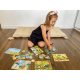 Odolné a silné kartonové dílky jsou ideální i pro nejmenší děti a hra, při níž děti přiřazují barevné žetony k velkým obrázkům na hrací ploše, je pro ně zábavná a trénují si při ní jemnou motoriku, rozpoznávání tvarů, soustředění a přesnost.