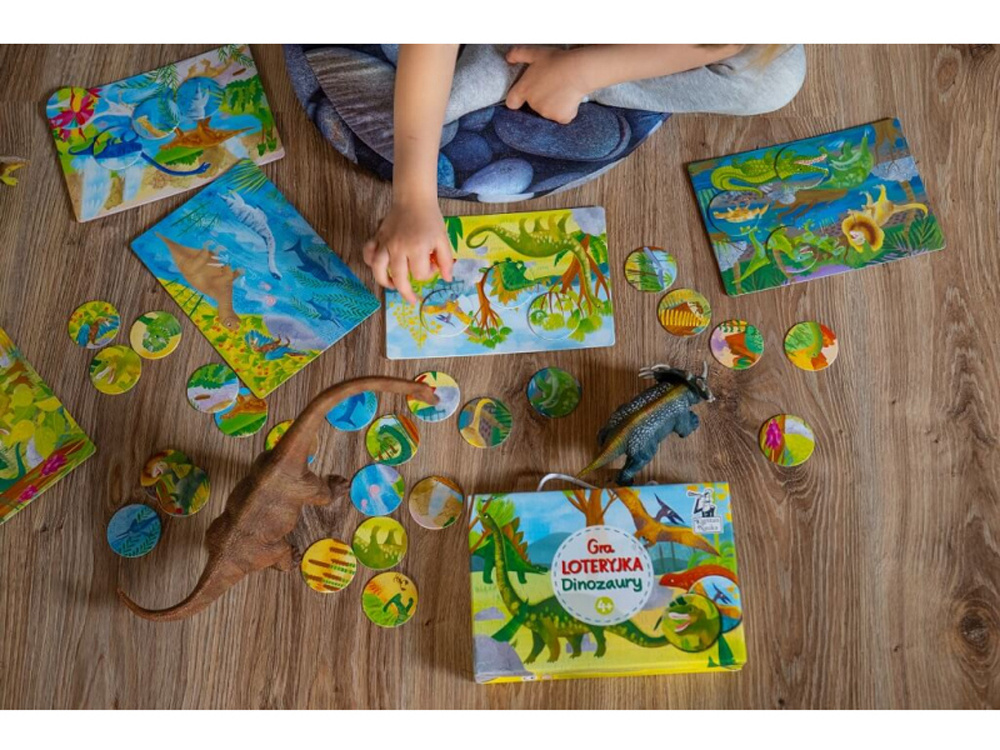 Loterie Dinosauři je hra pro předškoláky, při které si mohou procvičit koncentraci, postřeh a paměť. Úkolem nejmladších je najít žetony a přiřadit je k deskám. Hráči přitom získávají znalosti m.in. o tom, jaké oblasti na Zemi dinosauři obývali, jak se chovali, zda měli rádi život ve stádech a zda byli všichni obrovští a nebezpeční. Díky jednoduchým pravidlům je hra soustředěná a díky čtyřem variantám ji lze snadno přizpůsobit věku a schopnostem účastníků. Během hry se předškoláci seznámí s více než 20 druhy dinosaurů.
