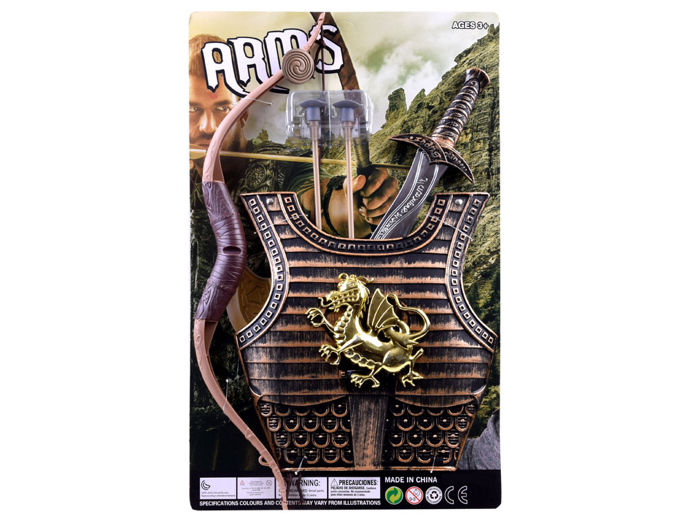 Brnění s mečem, lukem a šípy je sada pro mladého rytíře, která se skvěle hodí na hraní i na maškarní ples. Téměř každý chlapec si rád hraje na rytíře, bojovníky, vojáky atd. Mám možnost vám nabídnout úžasnou sadu pro malého lukostřelce. Realistická sada potěší nejednoho rytíře a je ideální pro hru i maškarní ples.