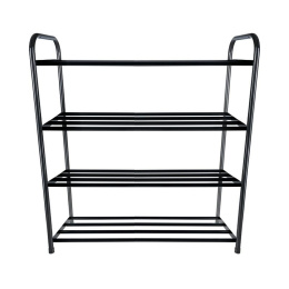 Ocelový regál na boty k vlastní montáži. Usnadňuje organizaci prostoru. Specifikace: materiál provedení: ocelové trubky rozměry (š./hl./vys.): 65x26x71cm 4 úrovně Maximální zatížení police: 4kg. množství na paletě 160 ks