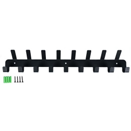 Vysoce kvalitní nástěnný věšák vyrobený z odolné uhlíkové oceli. Specifikace: rozměry (š./vys./hl.): 48,3x9x3cm 17 ocelových háčků montáž pomocí hmoždinek přiložených k sadě materiál: uhlíková ocel
