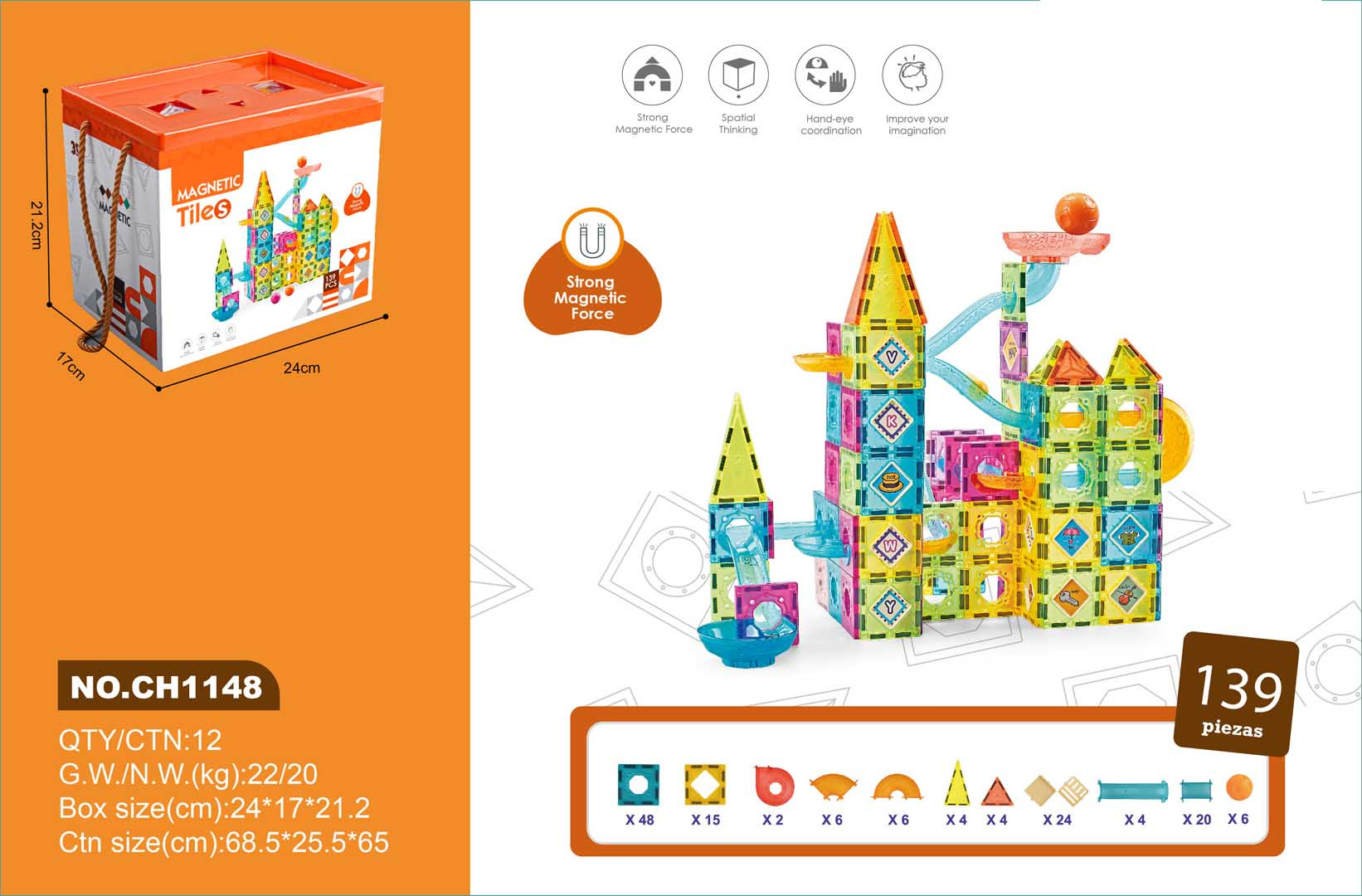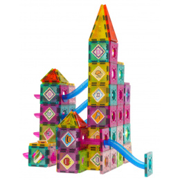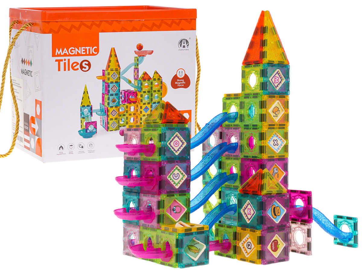 Sada barevných magnetických kostek pro děti od 3 let. Sada se skládá ze 139 prvků a umožňuje postavit dráhu pro kuličky v libovolném uspořádání. Kostky byly vyrobeny z nejkvalitnějšího materiálu, jsou hladké a pečlivě zpracované. Spojujeme je pomocí vestavěných magnetů. Magnety velmi dobře drží, zajišťují stabilitu konstrukce. V sadě se nachází obrázkový návod na sestavení ukázkových tratí. Krabice na kostky má pohodlné šňůrky na přenášení a na jejím víku se nachází třídič tvarů.