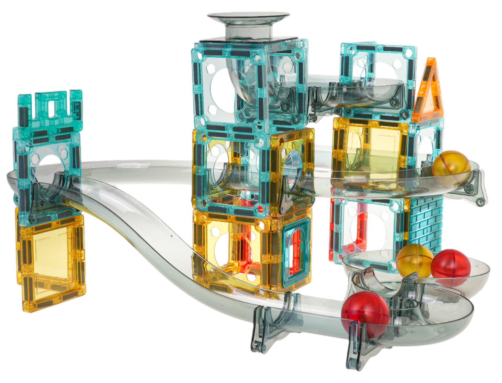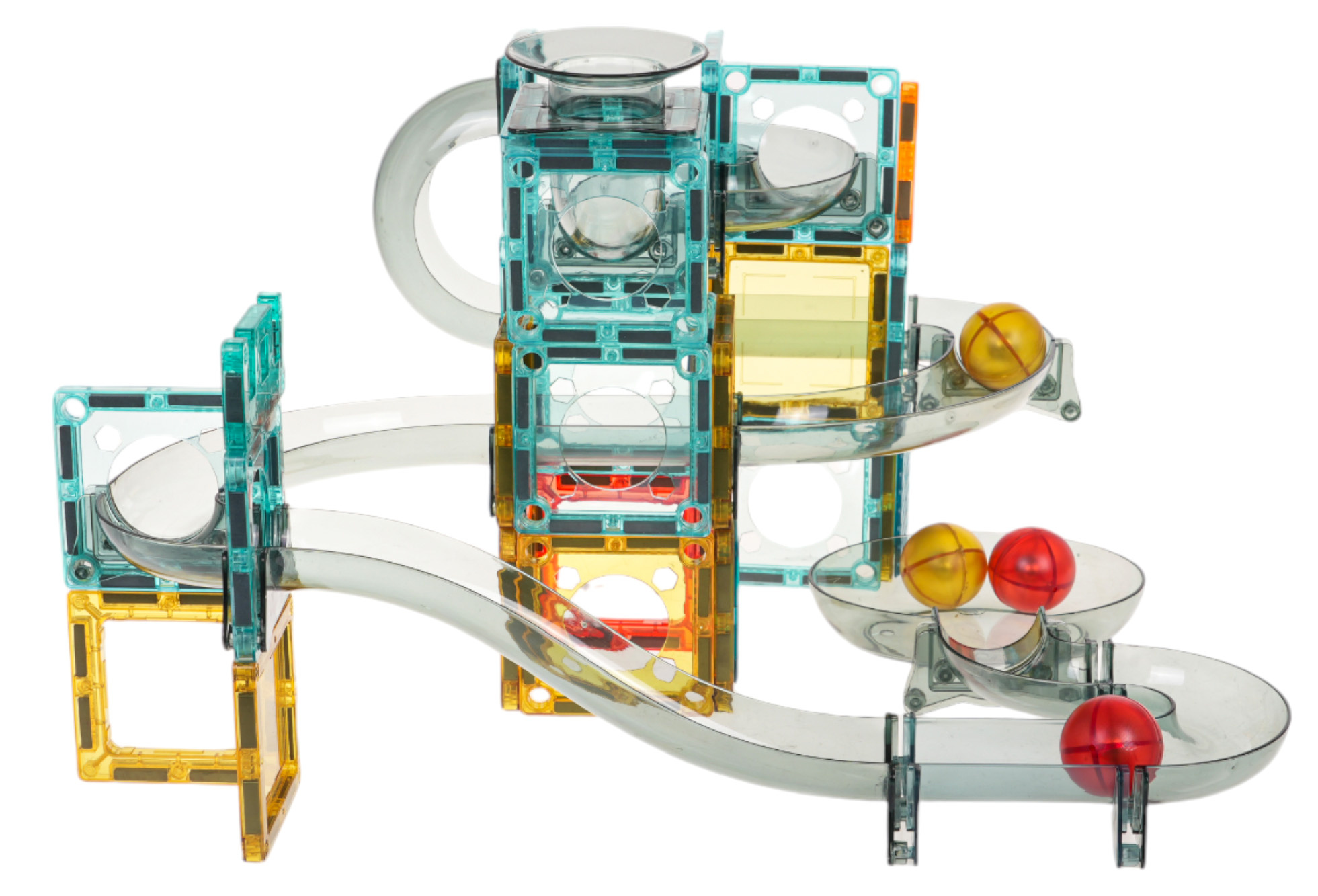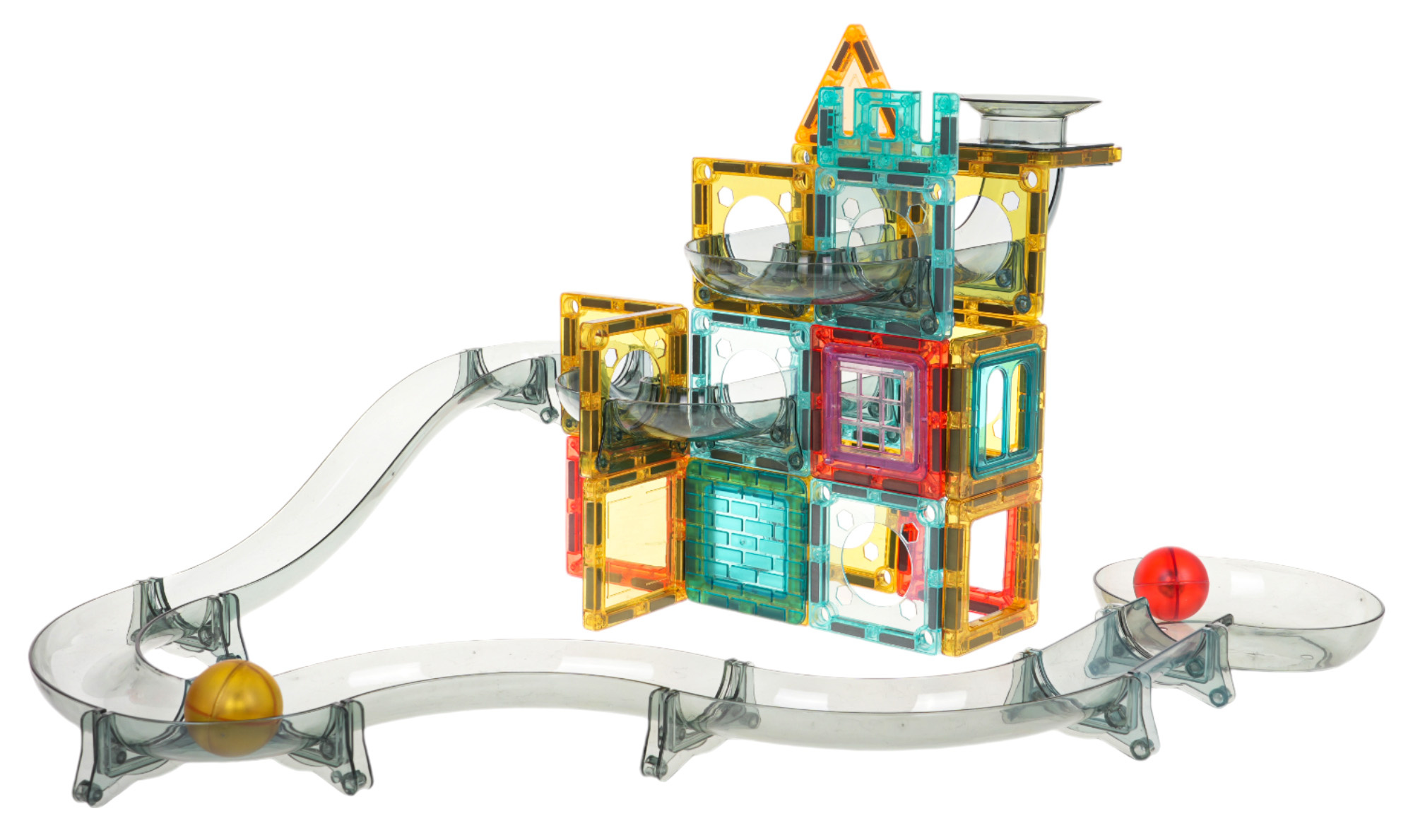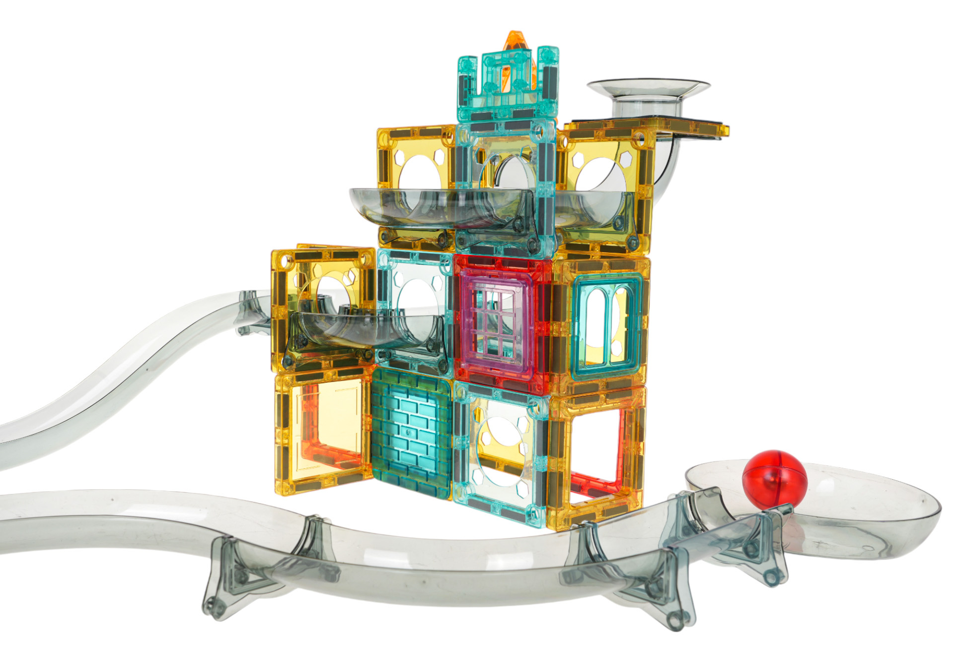 Barevná, odolná dráha k vlastní montáži s kuličkami pro děti od 3 let. Zábava spočívá ve vlastnoručním postavení konstrukce dráhy a následném pouštění míčků tunely. Lze se inspirovat obrázkovým návodem, který je součástí sady, nebo si vytvořit vlastní věž. Pouštění kuliček do pohybu a pozorování, jak překonávají klikaté tunely, přináší spoustu radosti, uklidňuje a ztišuje. Hračka pozitivně ovlivňuje rozvoj kreativity, představivosti a manuálních dovedností.