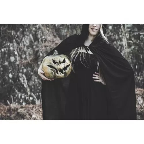 S KAPUCÍ - outfit je vybaven velkou kapucí, která má celých 30 cm. Pelerínu můžete nosit s kapucí nebo jako ozdobu na krk. Tmavý styl vzbuzuje nejistotu a přitahuje pozornost .