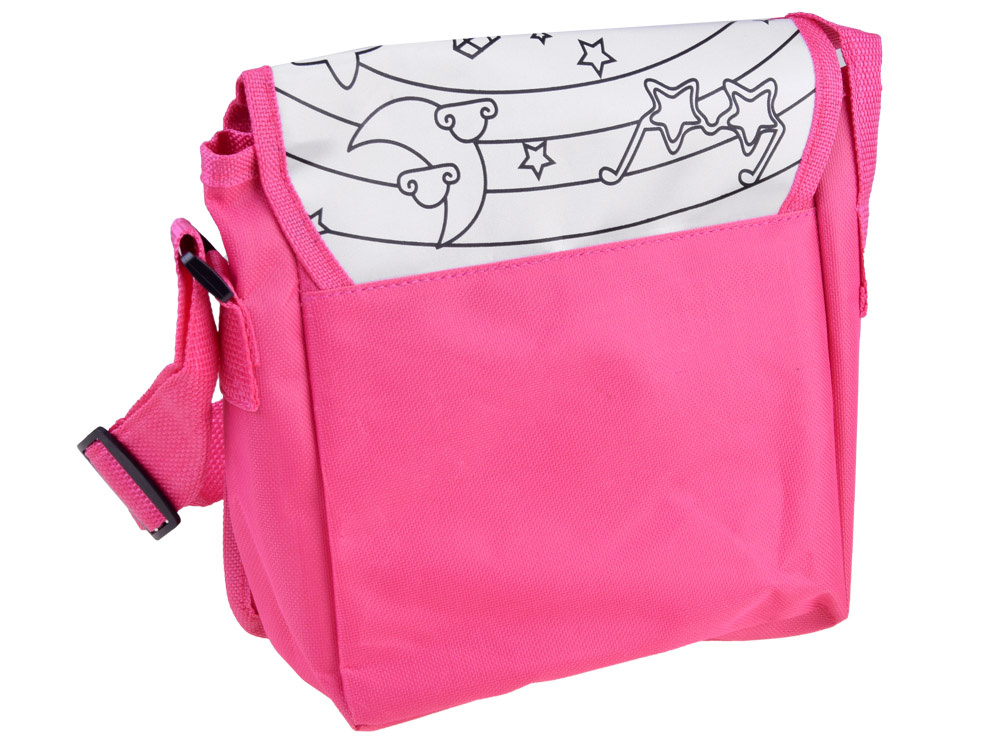 Taška má nastavitelný popruh, je prostorná a pravděpodobně se do ní vejde nezbytné příslušenství malého umělce.