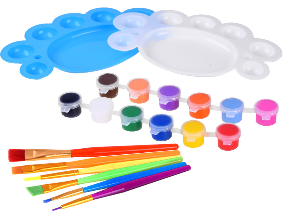 Vícedílná sada barev pro malé umělce je ideální pro děti, které rády tráví čas kreativním způsobem. Sada obsahuje vše potřebné: 12 barev, 2 palety barev, štětce s různě silnými hroty, válečky na tvary, štětce s pěnovými a houbovými hroty a ochrannou sadu s roztomilým zvířecím potiskem: zástěru a rukávy. Nápadů na hraní s touto pestrobarevnou sadou bude spousta. Můžete otiskovat vzory pomocí houbiček různých velikostí, namáčet válečky se vzory v barvách a otiskovat je na kartu, míchat barvy a vytvářet vlastní. Příslušenství obsažené v sadě naučí malého umělce poznávat a používat různé techniky malování, pracovat s různými texturami a používat vzory k vytváření krásných jedinečných obrázků. S takovým souborem vzniknou mimořádná díla.