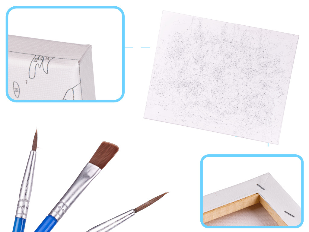 Na obrázku jsou očíslovaná pole. Sada se dodává s barvami, které jsou rovněž číslované. Tak budete vědět, jakou barvu použít v které oblasti. Když všechna políčka vyplníte podle značek barvami, vznikne skutečně nádherné umělecké dílo, které může zdobit stěny vašeho obývacího pokoje nebo ložnice.