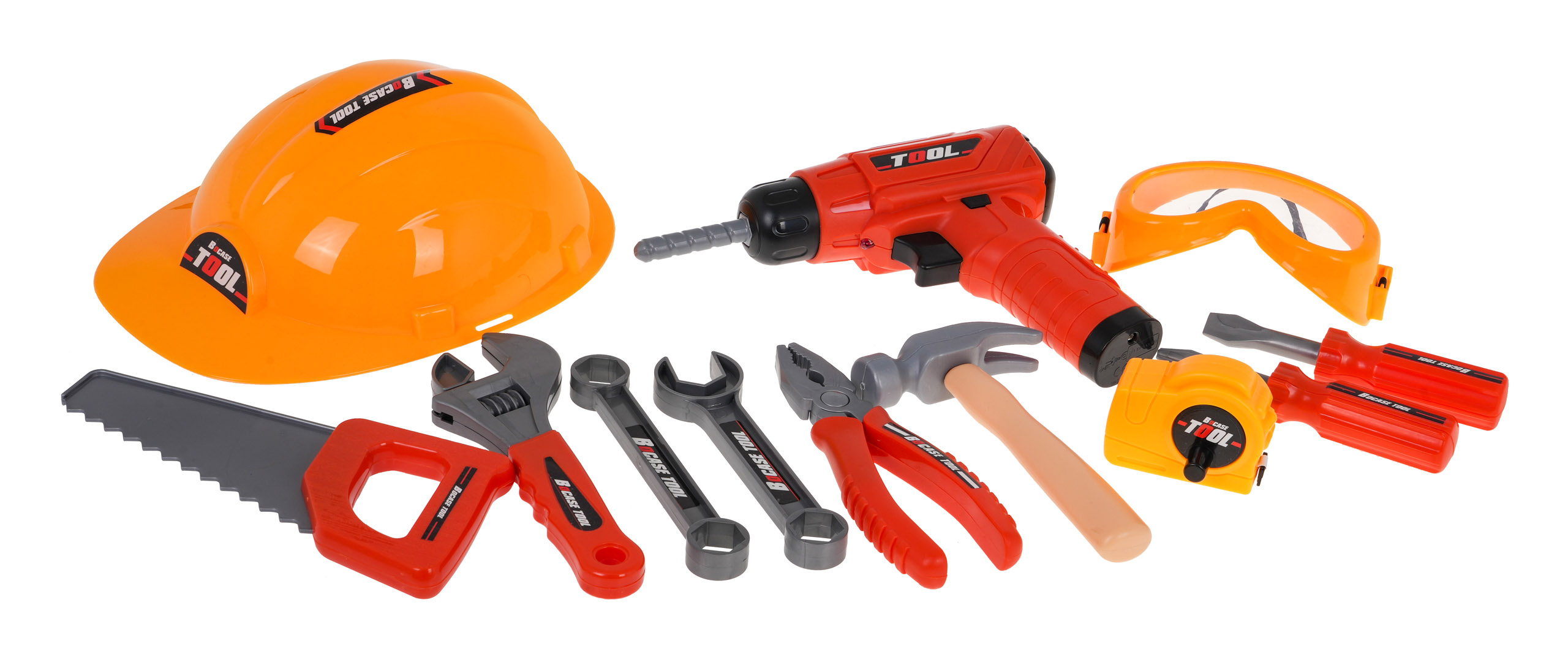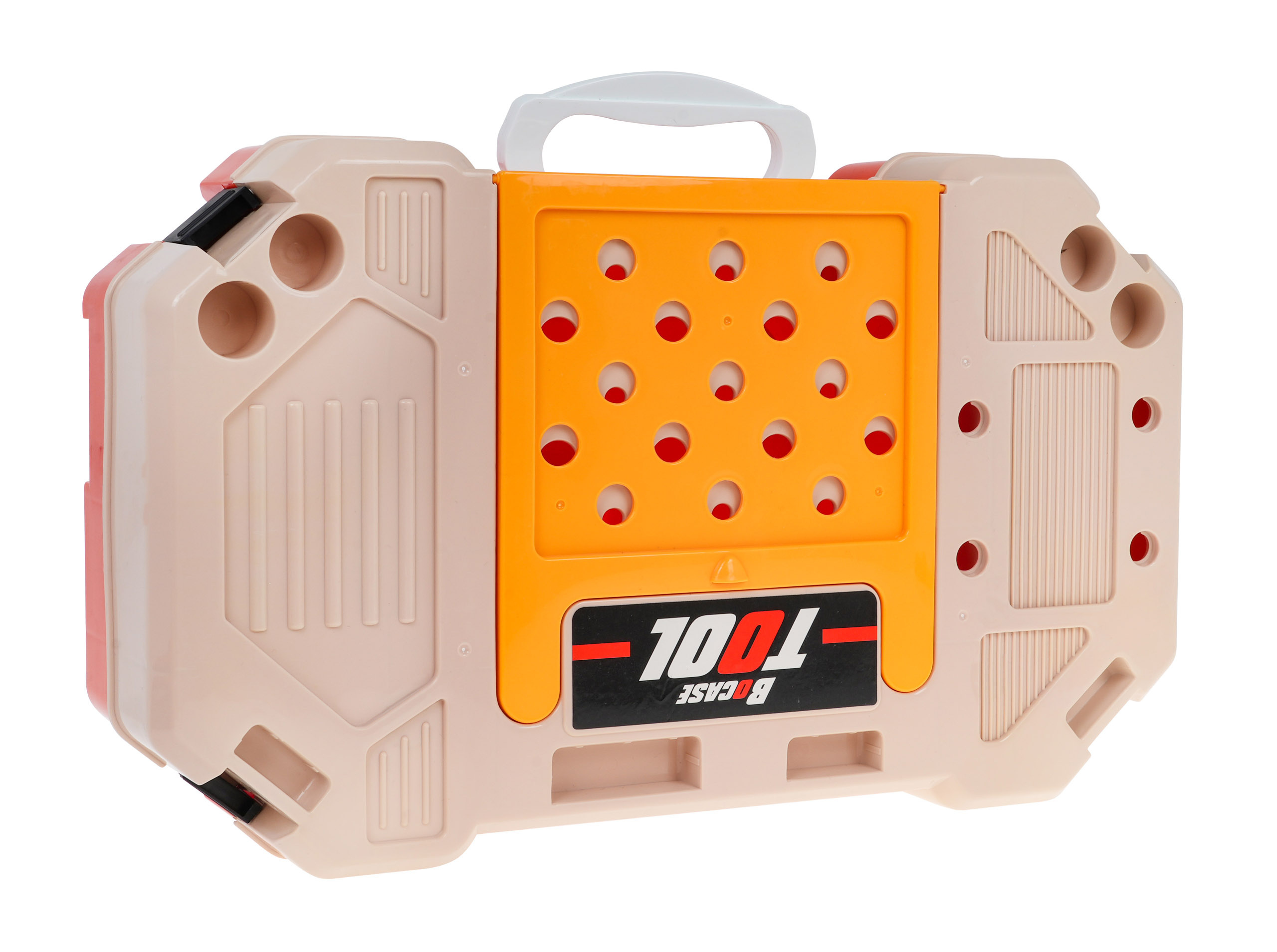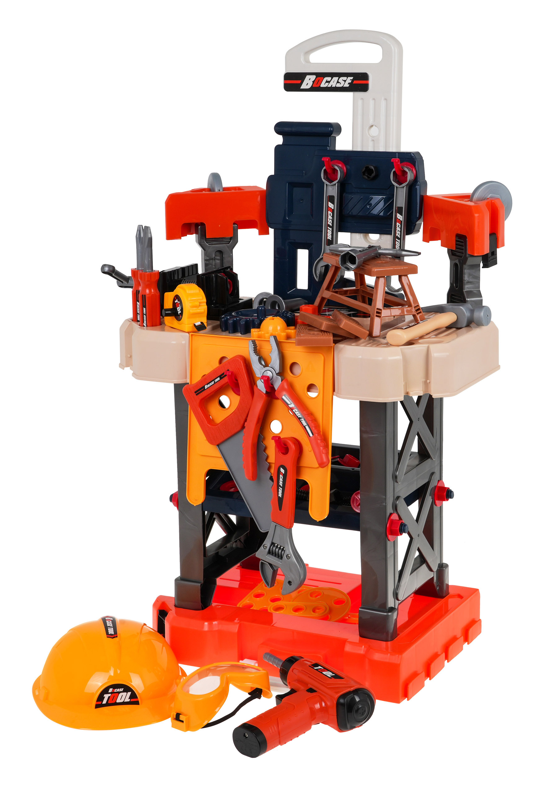 Dobře vybavená sada nářadí 3 v 1 pro malé kutily od 3 let. Ze sady si můžeme postavit pracovní stůl, a až si s ním přestaneme hrát, přeměnit ho na kufřík na nářadí, které je součástí sady. Můžeme vyrobit kufr s rukojetí pro přenášení nebo kufr na kolečkách pro tlačení. Sada obsahuje 78 položek, jako jsou dílenské komponenty, helma, pila, šroubováky, akumulátorová vrtačka/šroubovák, velké množství šroubů atd. Šroubovák je napájen bateriemi typu 2 x 1,5 V AA, baterie nejsou součástí dodávky. Šroubovák funguje stejně jako skutečný, šroubuje, odšroubovává a při práci svítí červená LED dioda na přední straně hračky.