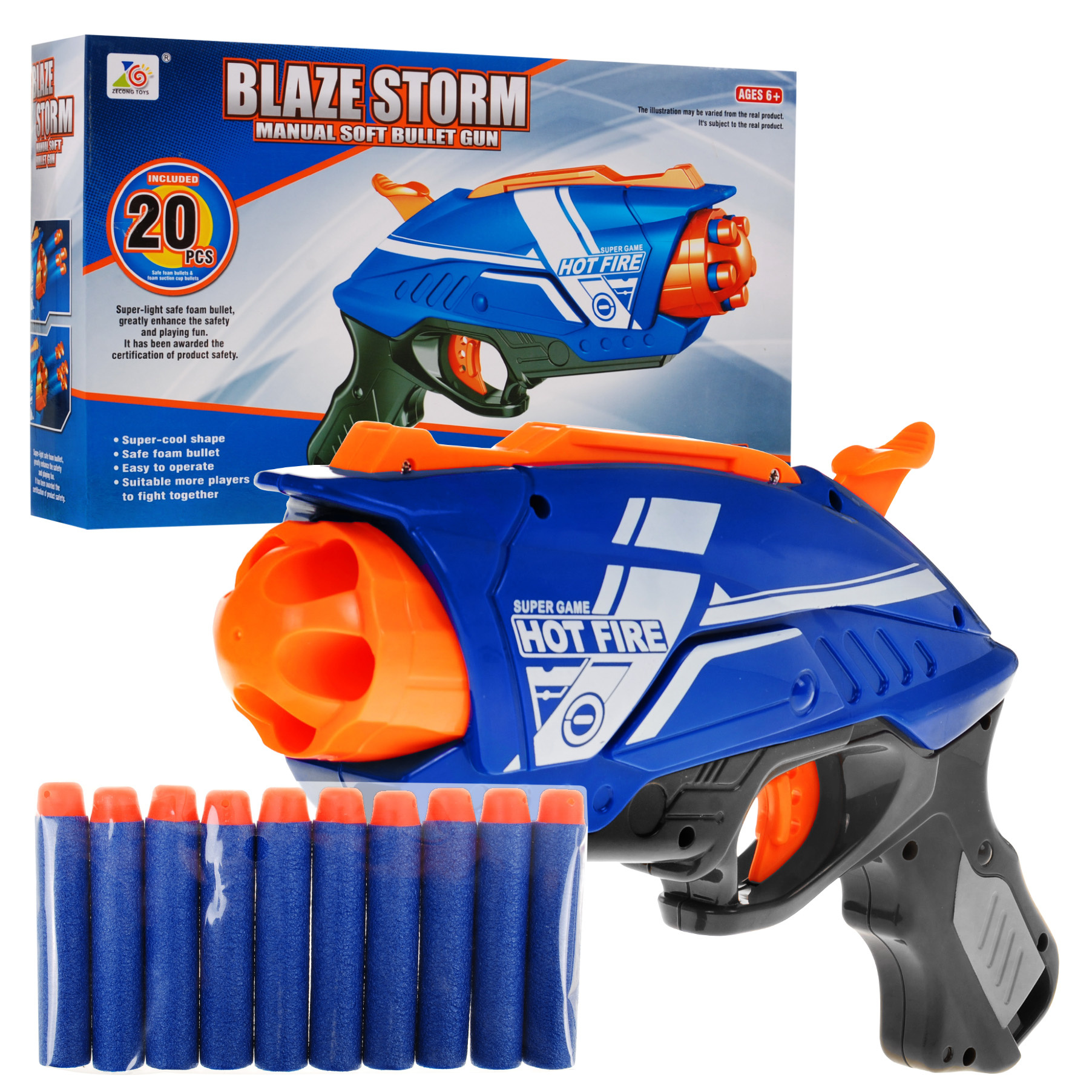 BLAZE STORM Manuální pistole na měkké náboje / krátká pistole s pružinovým odpalovačem + 20 pěnových nábojů (7063)