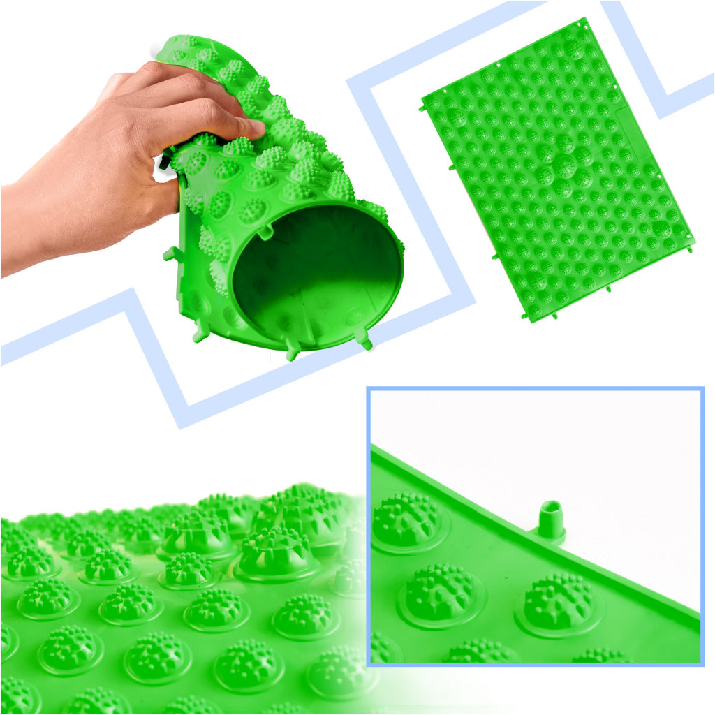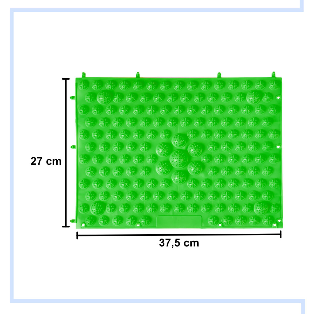 Korekční, smyslová masážní podložka. Je vybavena řadou výstupků, které vám umožní masírovat unavená chodidla a stimulovat jejich krevní oběh. Podložky lze spojit pomocí háčků. Plast: Plast TPE. Rozměry: 37,5x27 cm.Celý popis