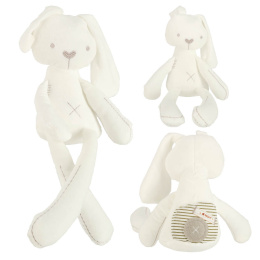 Malý roztomilý králíček přímo vybízí k dlouhému mazlení. Je vyroben z krásně hebkého plyše. Kvalitní provedení a bezpečné materiály jsou vhodné pro děti od narození. Děti naučí empatii a starosti o druhé. Bílý medvídek je tedy vhodnou první hračkou i dobrým kamarádem na spaní pro odrostlejší děti.