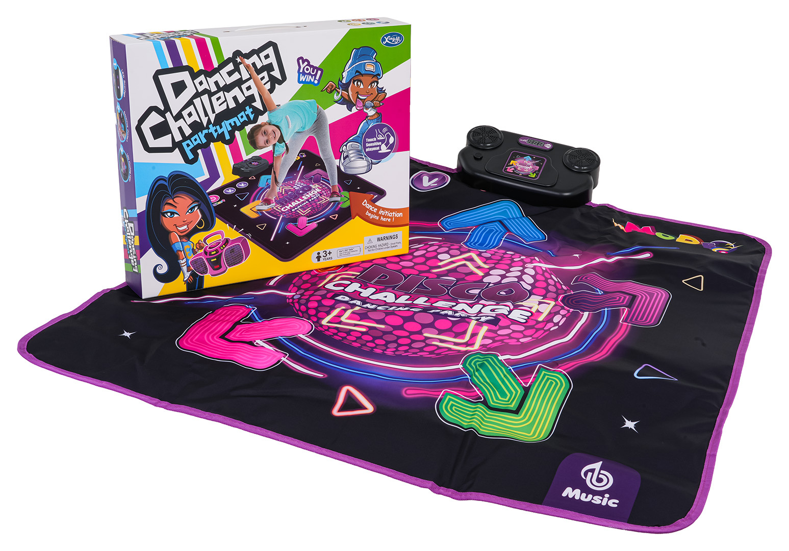 Taneční podložka se zvukovým a světelným efektem pro děti od tří let. Podložka je vyrobena z nejkvalitnějších materiálů, je voděodolná a spodní vrstva je protiskluzová. Na vrchu podložky se nachází panel, na kterém se zobrazují získané body a úkoly, tedy blikající šipky, signalizující, jakých polí se na podložce dotknout. Dítě je může tlačit ručičkami nebo nožičkami. Mata má taneční plochu, vypínač a regulaci hlasitosti. Máme čtyři herní režimy (výchozí režim, režim přehrávání, režim výzvy rozdělený do 9 úrovní a režim paměti rozdělený do 10 úrovní). Hra na podložce podporuje koordinaci rukou a nohou, zlepšuje fyzickou kondici a zvyšuje zájem o tanec. Podložka je napájena bateriemi typu 4 x AA 1,5 V (nejsou součástí balení).