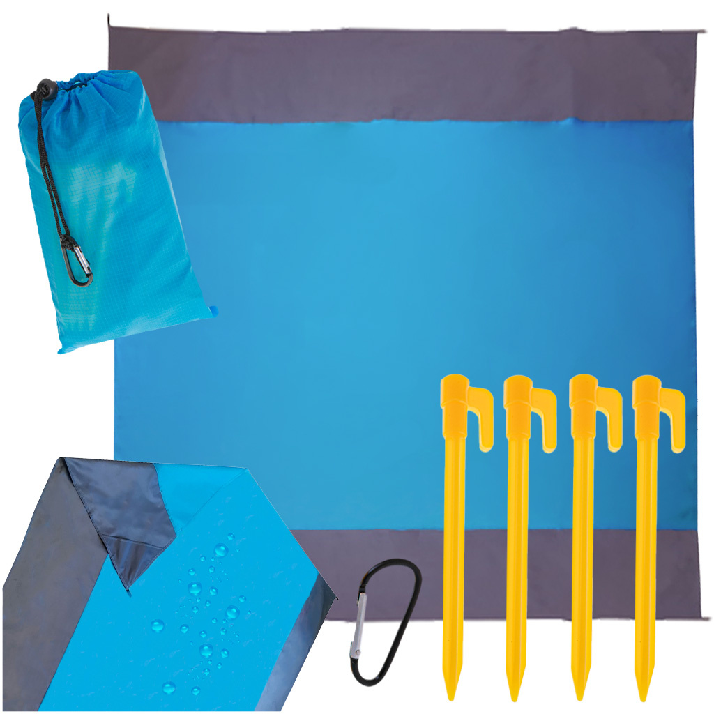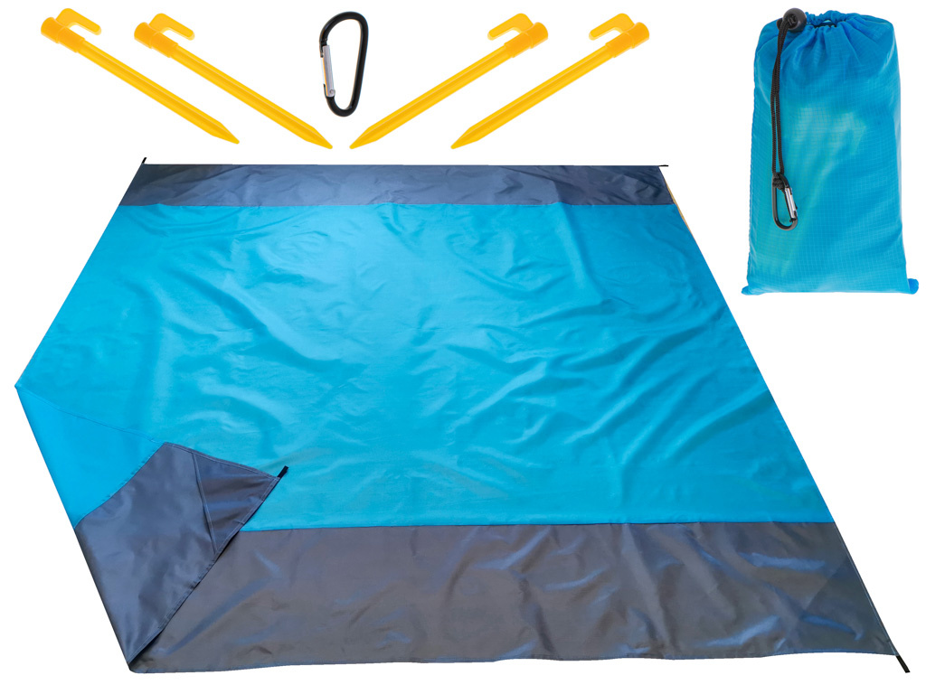Velká voděodolná plážová podložka. Nepostradatelný pro cesty na dovolenou. Je ideální na pláž, do zahrady nebo do lesa. Snadno se čistí. Součástí balení je podložka, plastové kolíky, karabina a taška. Rozměry: 210x200 cm.Celý popis