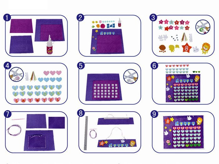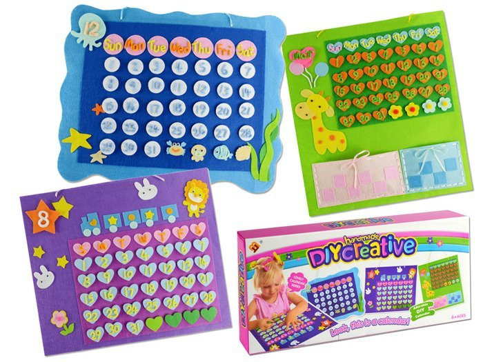 Super kreativní sada na výrobu kalendáře. Každé dítě, které má rádo ruční práce, jako je vyšívání, malování nebo lepení a zdobení, si rádo vyrobí vlastní kalendář. Tvořte od nuly, navrhujte, zdobte, přidávejte barevné doplňky a konečný výsledek vás jistě překvapí! Stačí trocha fantazie a vytvoříte něco jedinečného. Kromě kalendáře si dítě může vyšít "schránku" na drobné poklady.